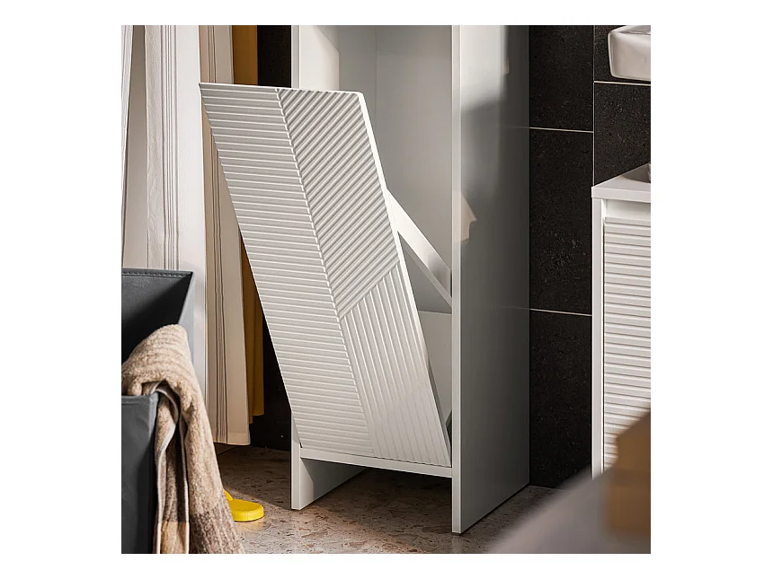 Zwevende badkamerkolom, BIRD collectie, in mat wit en glanzend wit, ideaal voor een moderne badkamer.