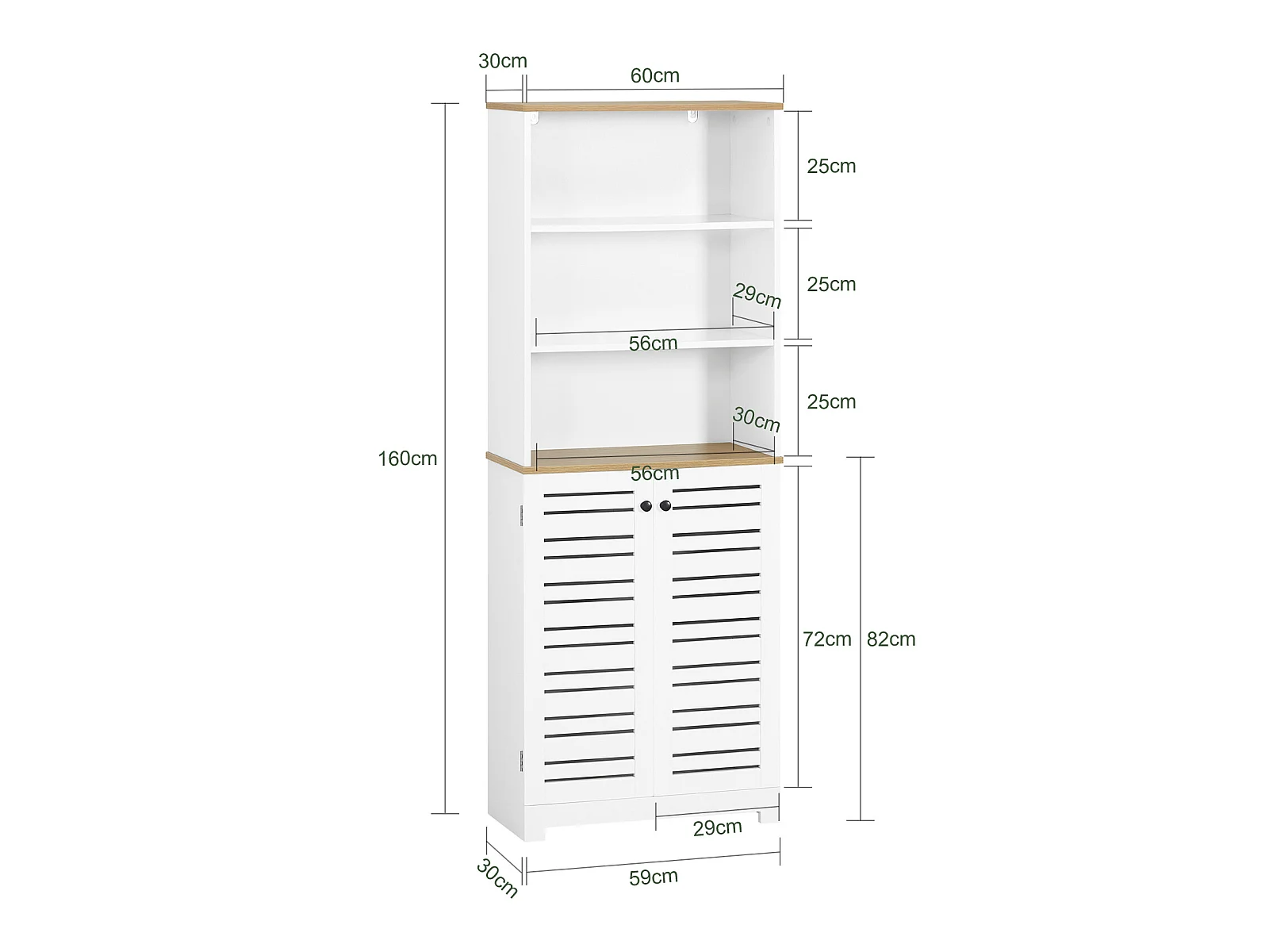 SoBuy BZR44-W badkamer hoge kast badkamerkast opbergkast badkamerkast met 3 vakken en 2 lamellendeuren boekenkast keukenkast