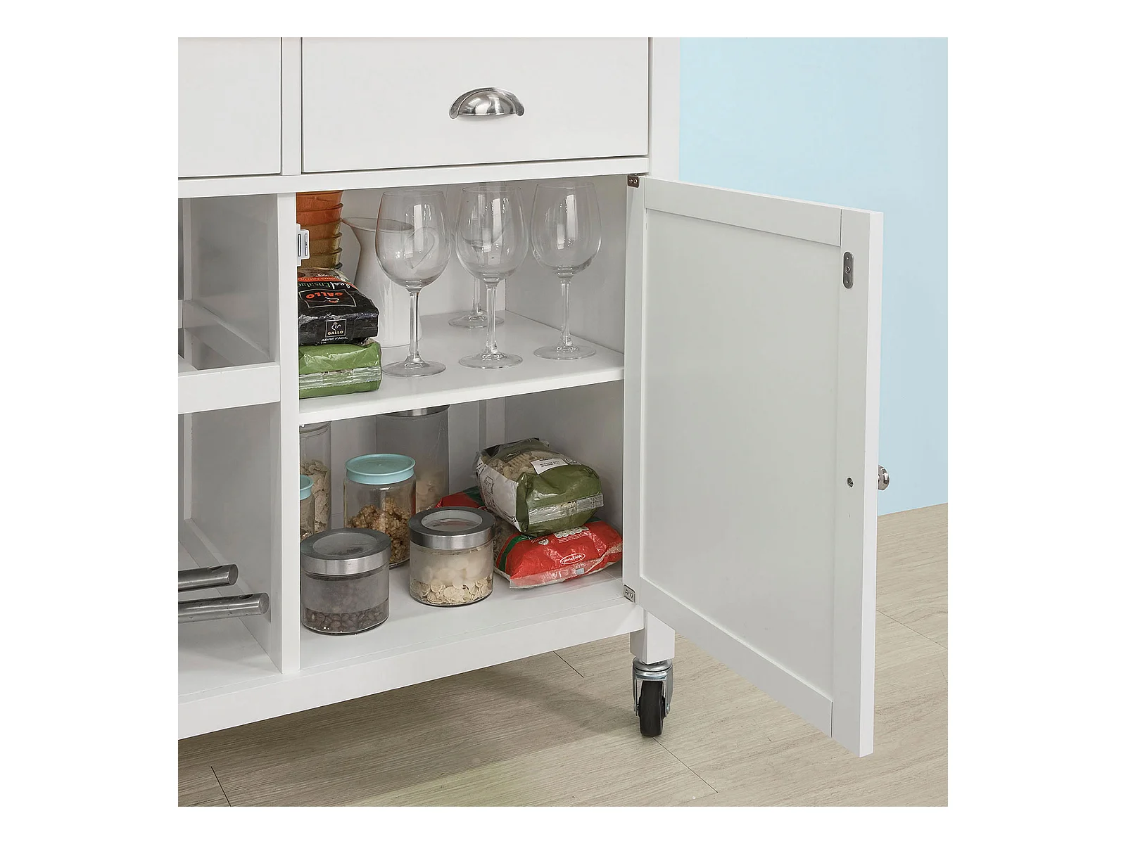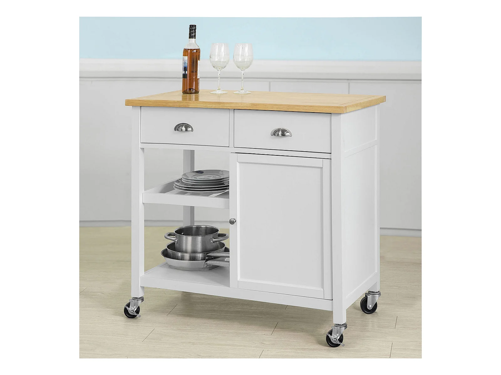 SoBuy FKW117-W Eetkamerkast Keuken Trolley Keukenkast Keukeneiland Buffet Dressoir Serveerwagen Opbergkast met 1 Laden, 2 Deuren