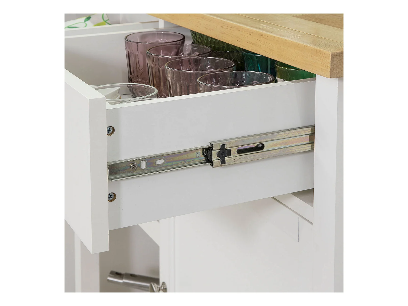 SoBuy FKW33-W Mobiele keukenkast Keukenwagen Roestvrije stalen tafelblad Praktisch - Wit