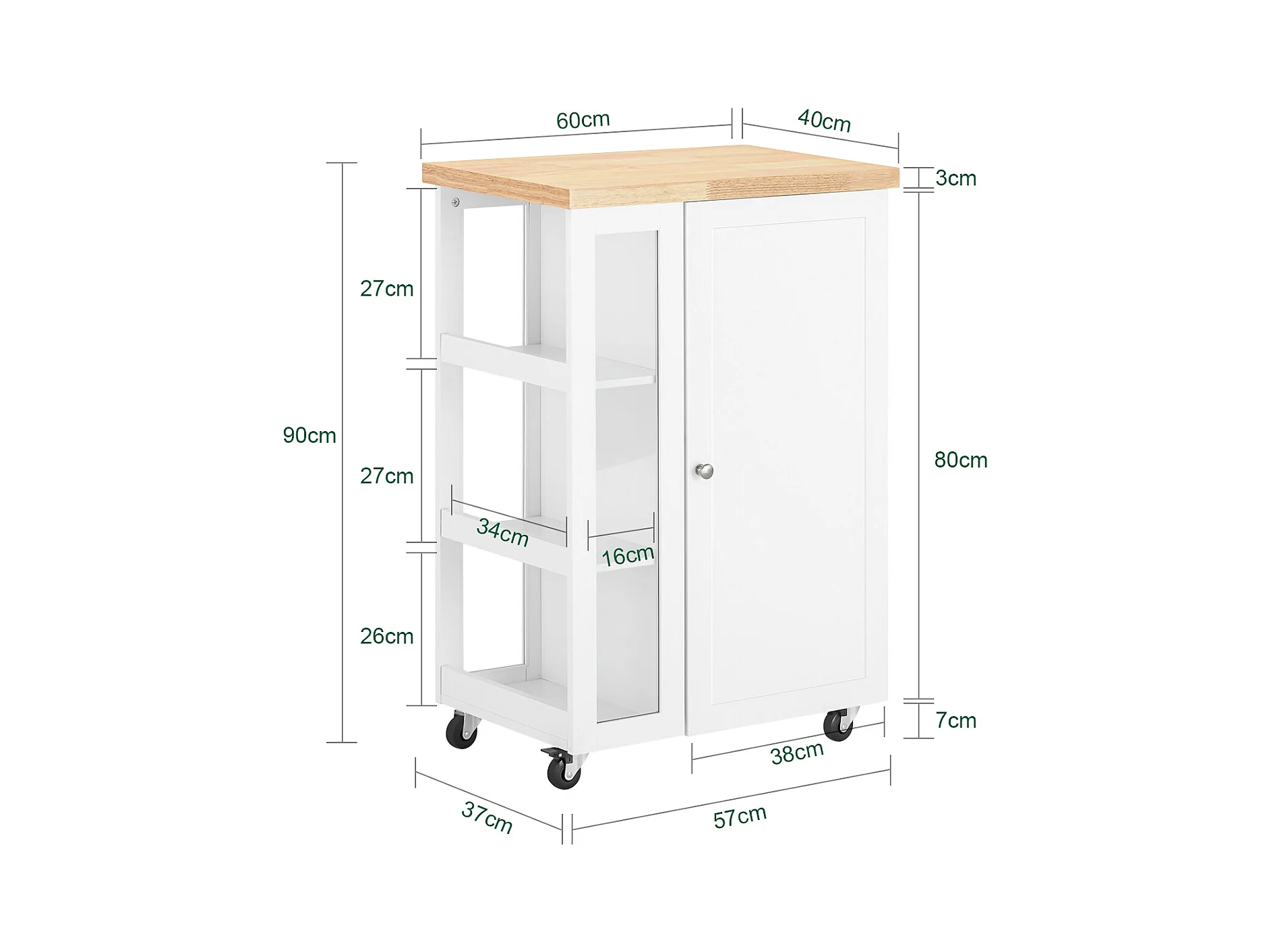 SoBuy FKW75-WN Keukentrolley Serveerwagen Trolley Kast Servies met 1 deur en 3 planken