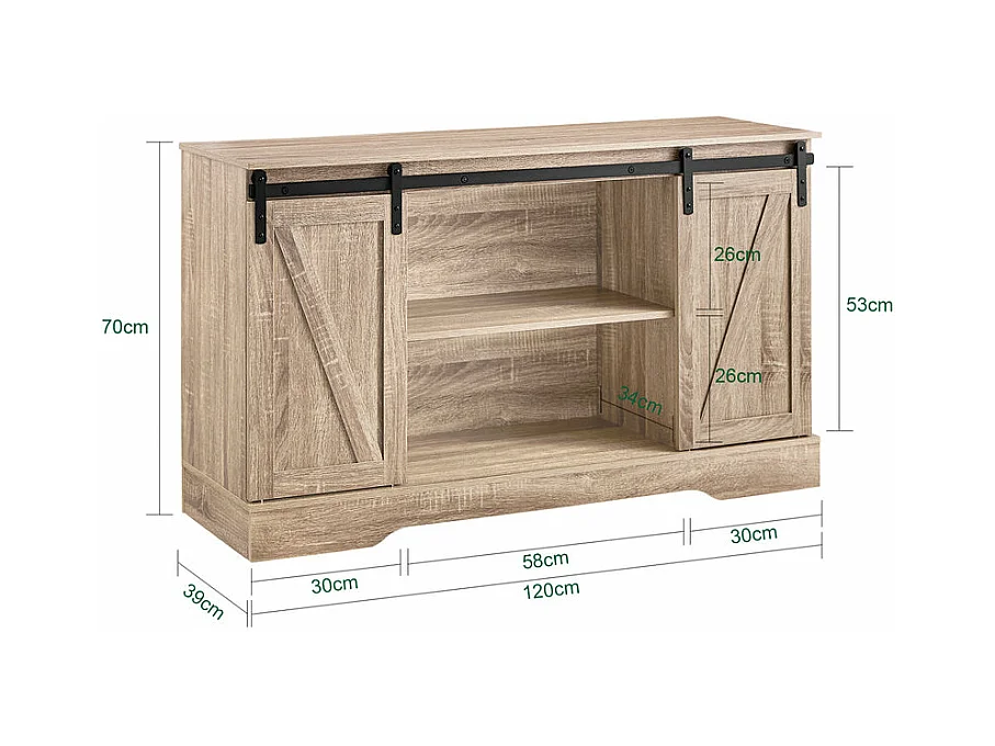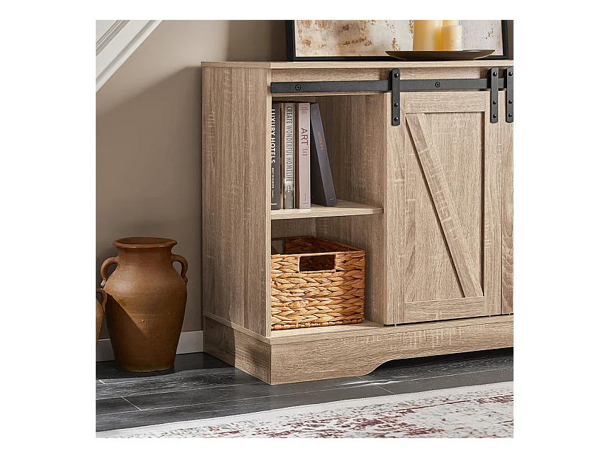 SoBuy FSB60-E Meuble Bas Placard de Rangement Commode avec Porte de Grange Coulissante Armoire à Chaussures Commode à Chaussures