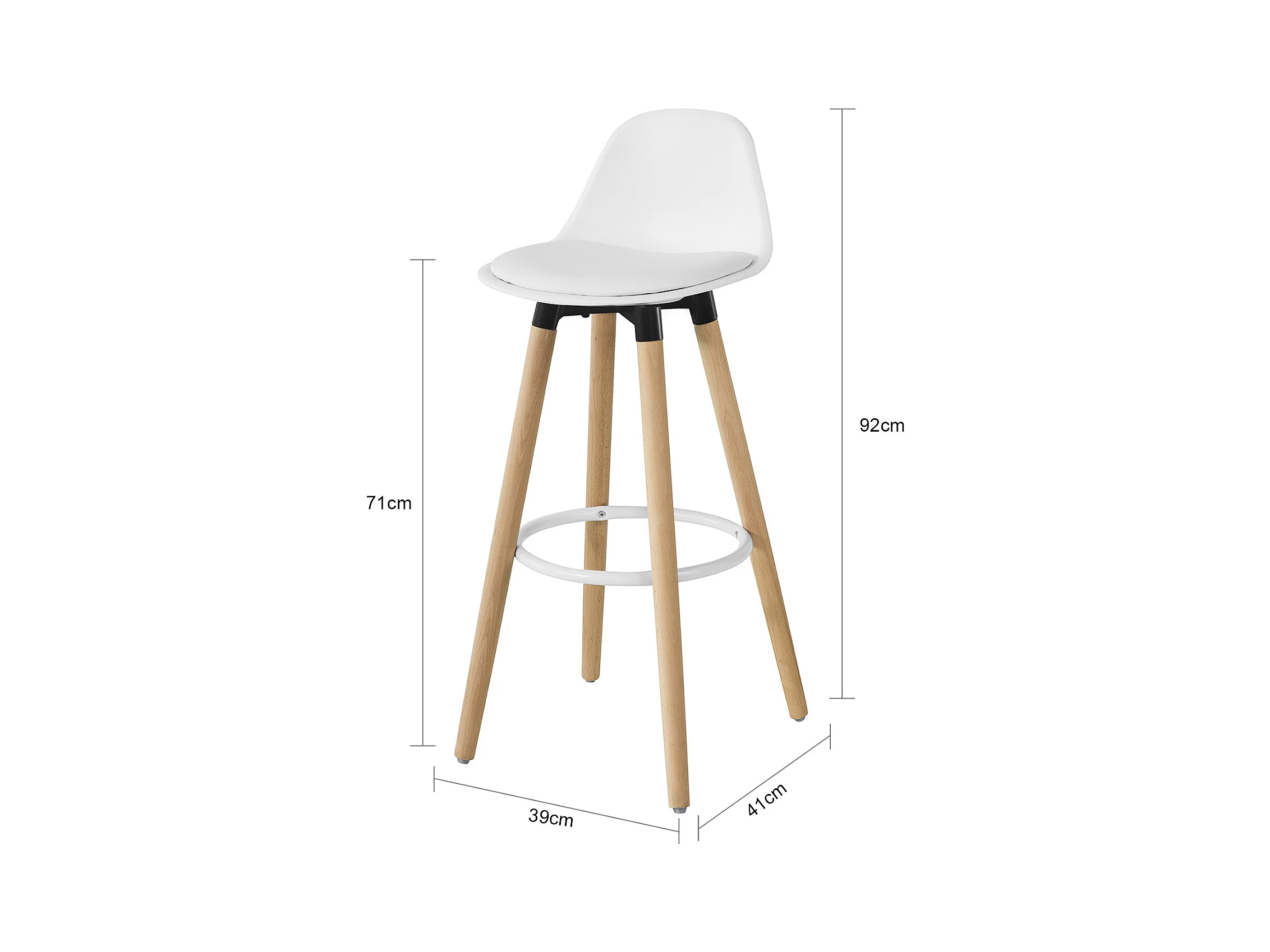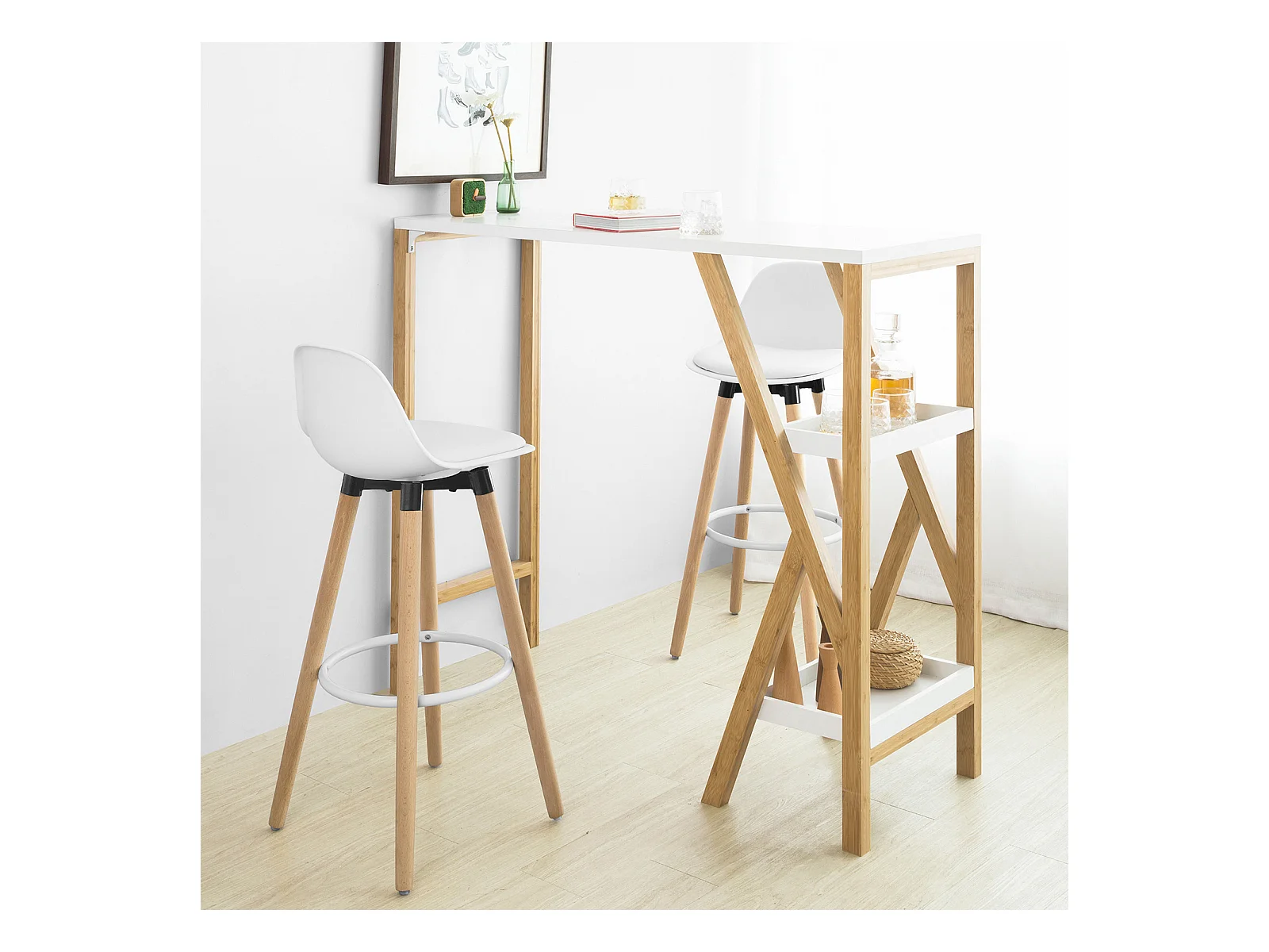 SoBuy FST70-W Barkruk Voetsteun met Rugleuning Witte Beuken Poten Zithoogte 71cm Wit