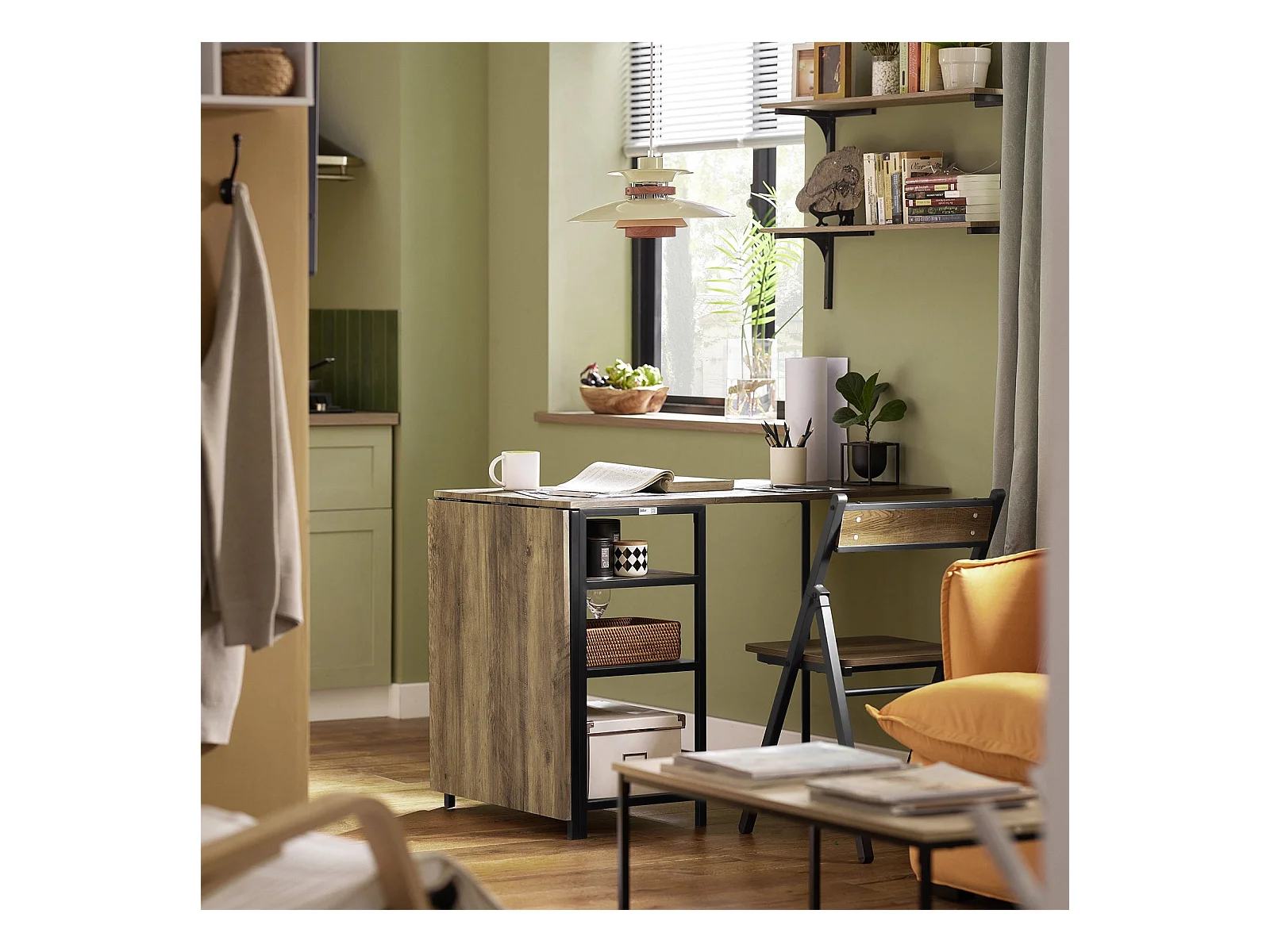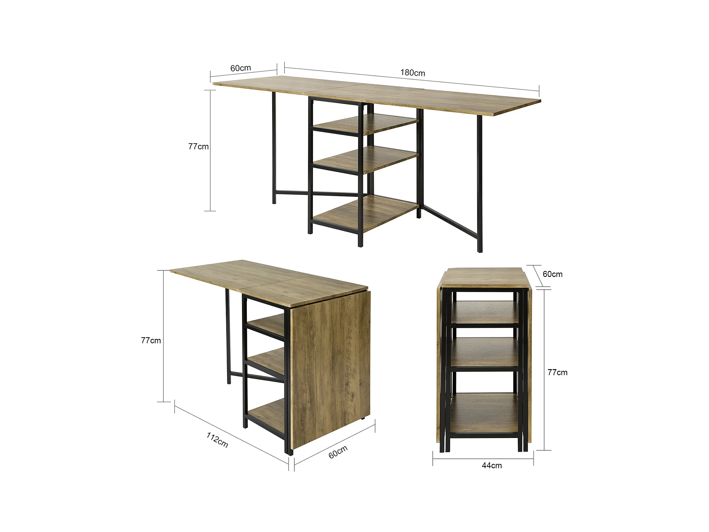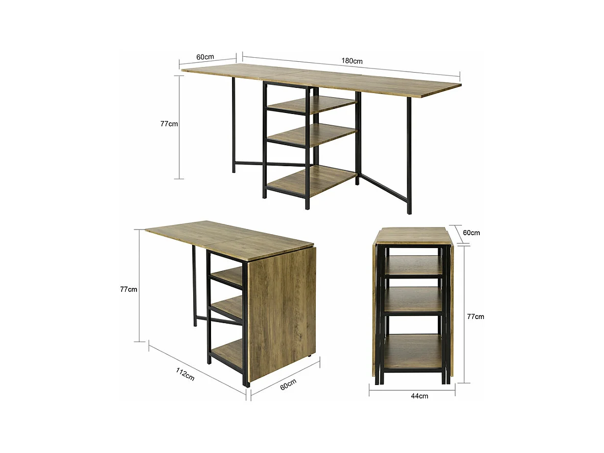 SoBuy FWT62-N klaptafel met 2 kleppen en 3 opslagplanken, Opvouwbare Keukentafel, Opklapbare Eettafel, Ruimtebesparend