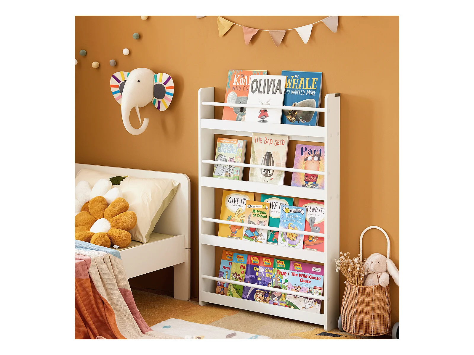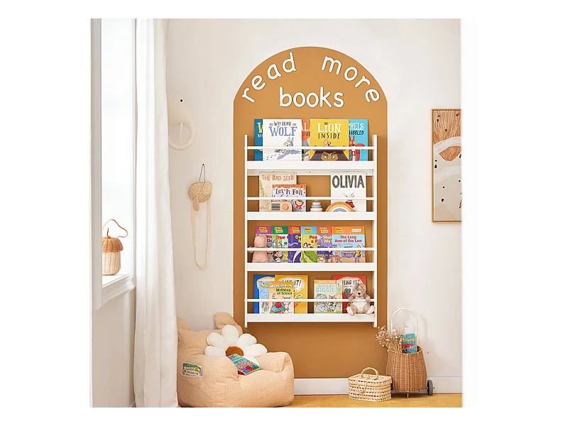 SoBuy KMB45-W Kinderplank, Boekenplank Opbergplank met 4 Planken voor Boeken en Decoratie