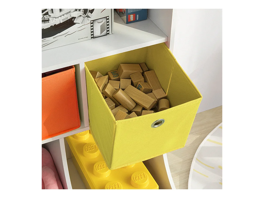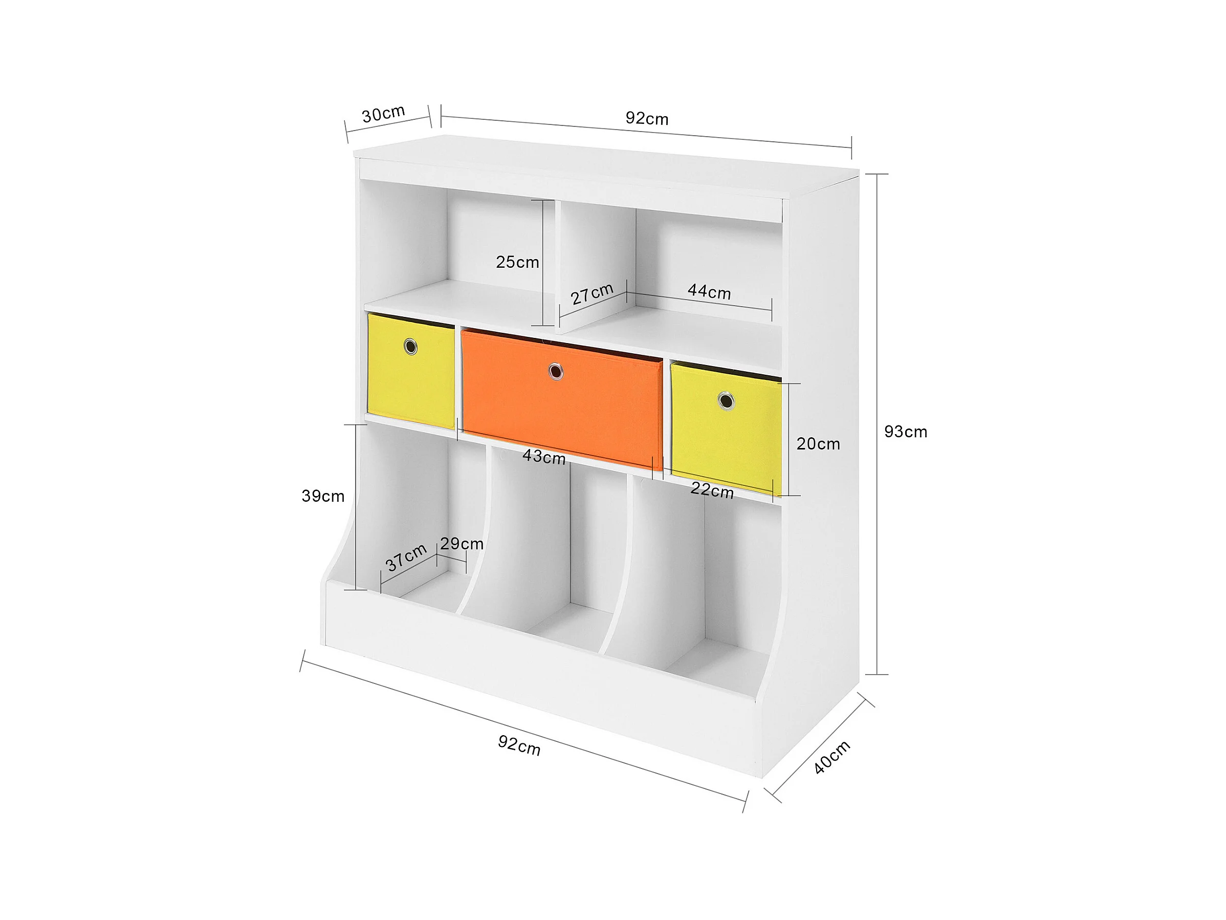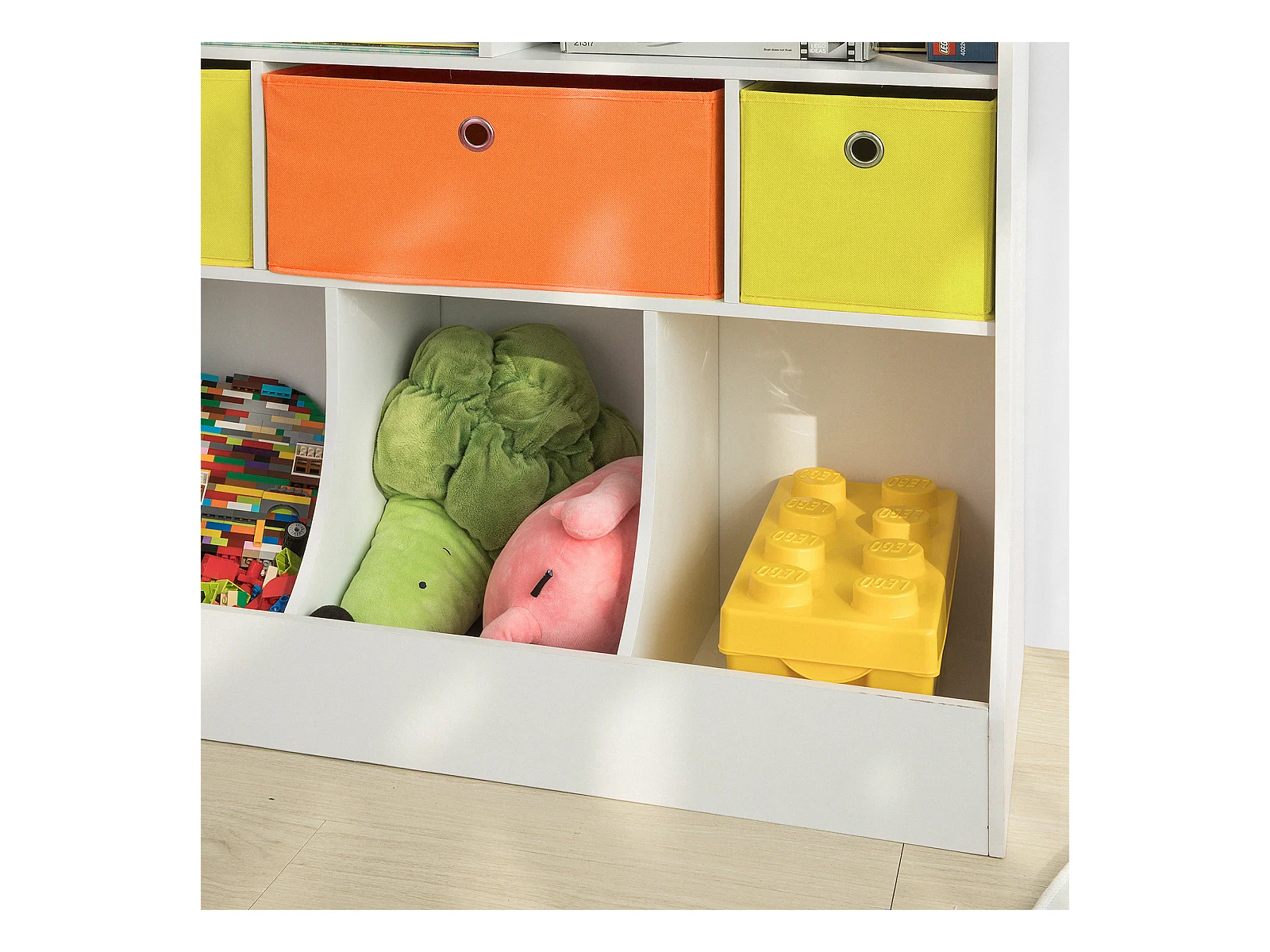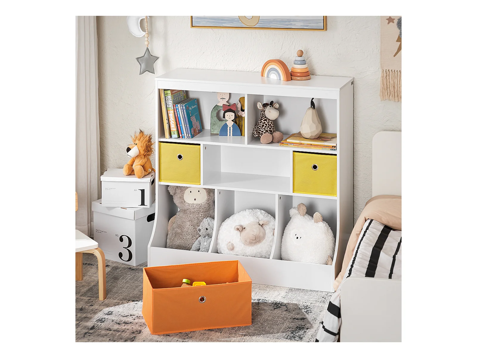SoBuy KMB26-W Kinderboekenkast Kinderplank met 5 Opbergvakken en 3 Stoffen Dozen Speelgoedplank Ppbergplank voor Kinderen Speelgoed Organizer Wit