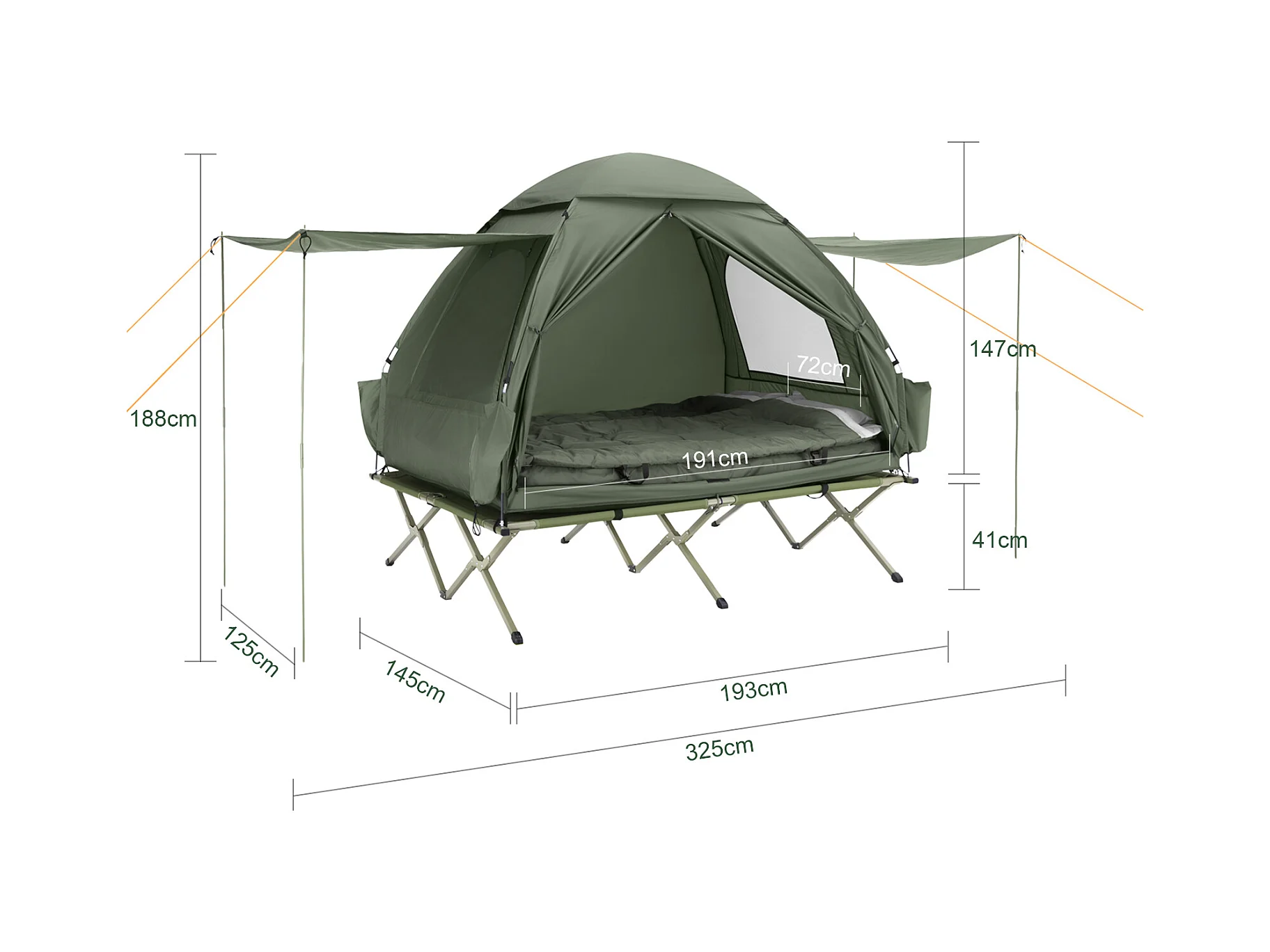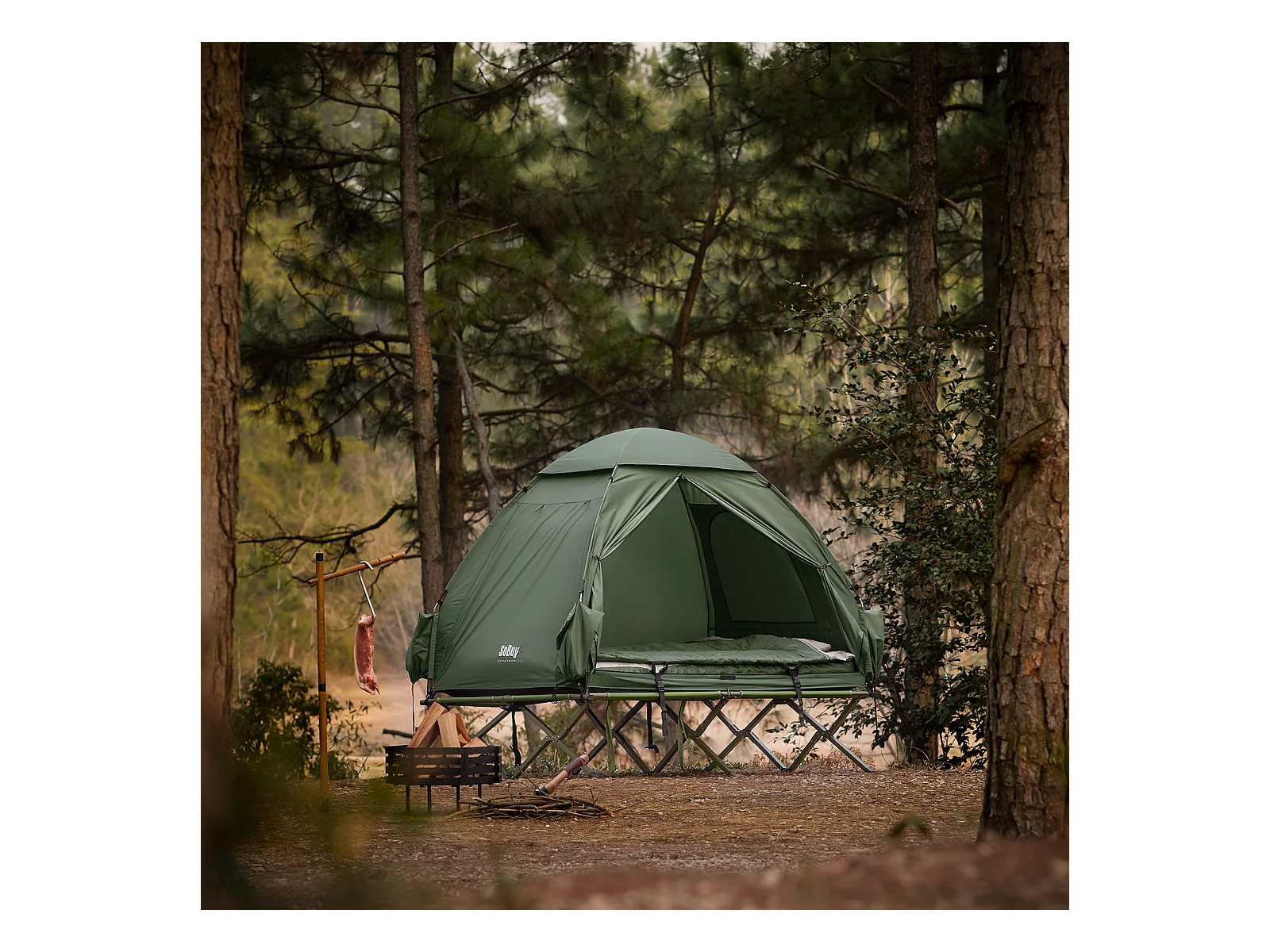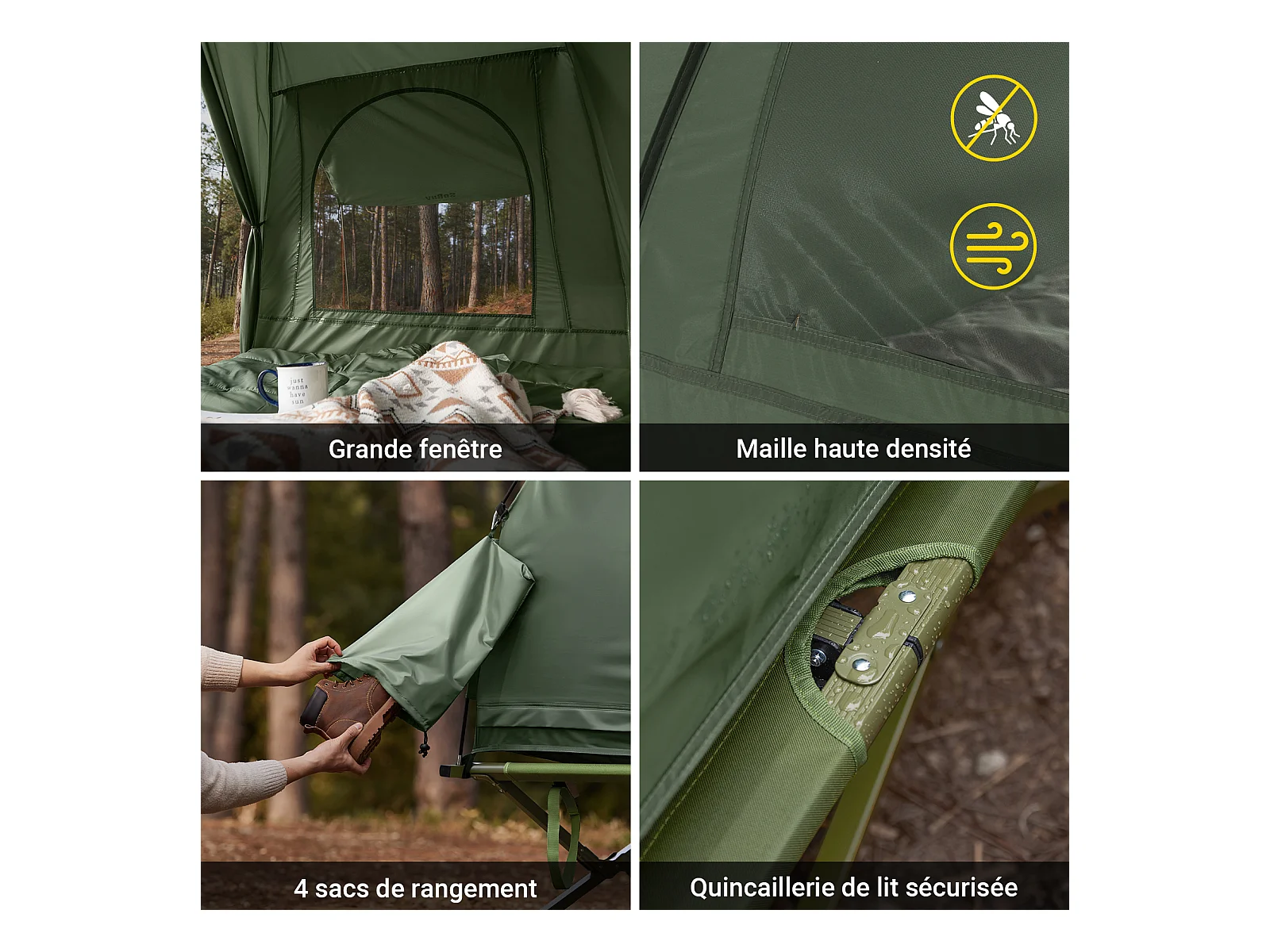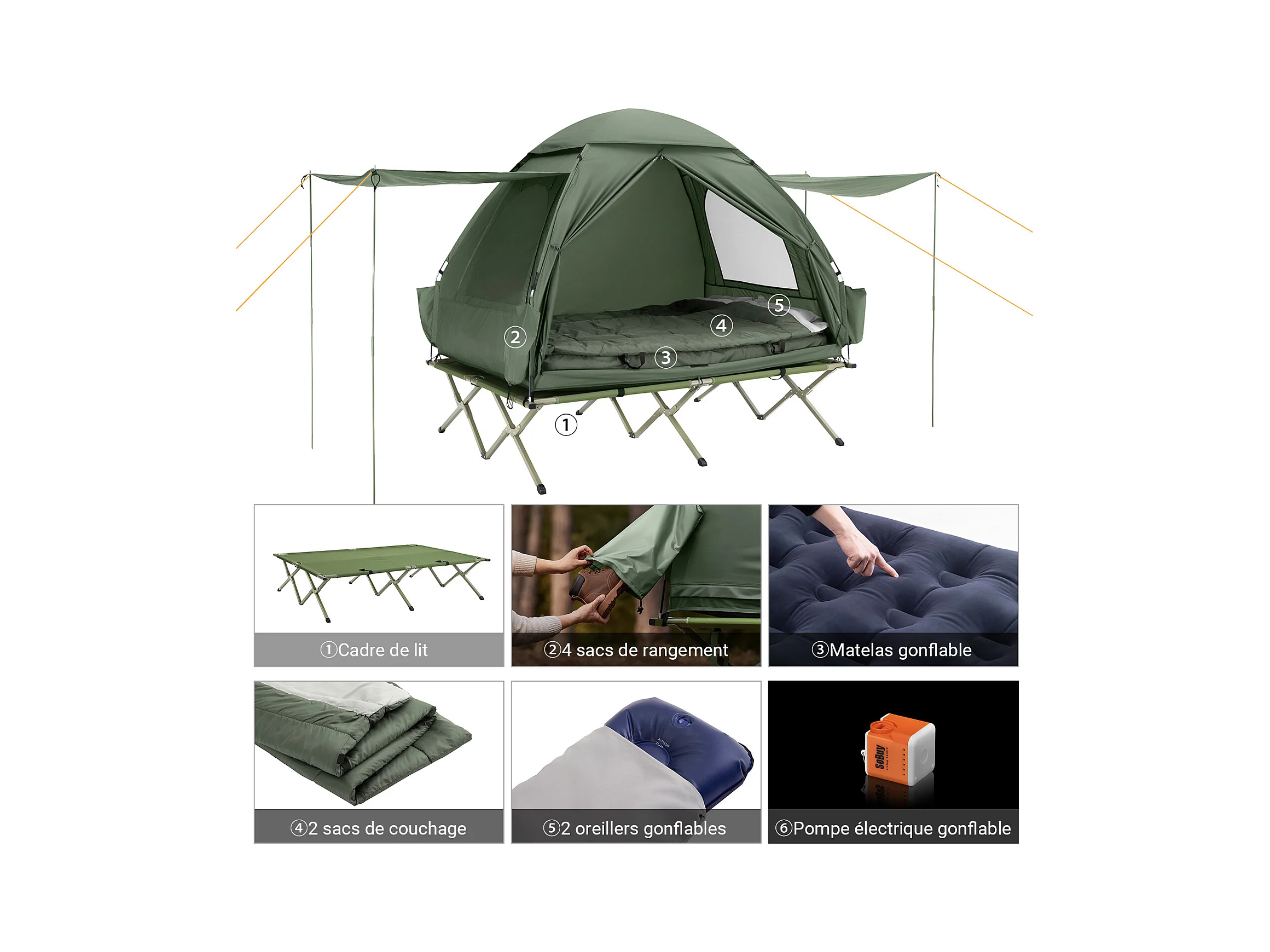Sobuy ogs32-l-gr 4-in-1! 2-zits opklapbed opvouwbaar kampeerbed reiscamping met dak, slaapzak