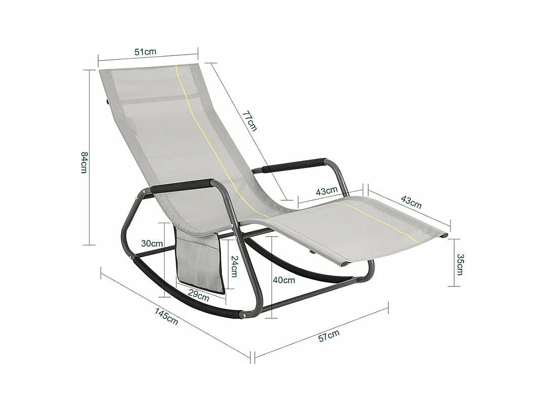 SoBuy OGS47-HG Schommelstoel Relaxstoel Ligstoel Lounge Chair Tuinstoel Zonnebaden - met Zijtas en Voetensteun - Draagvermogen 120 kg