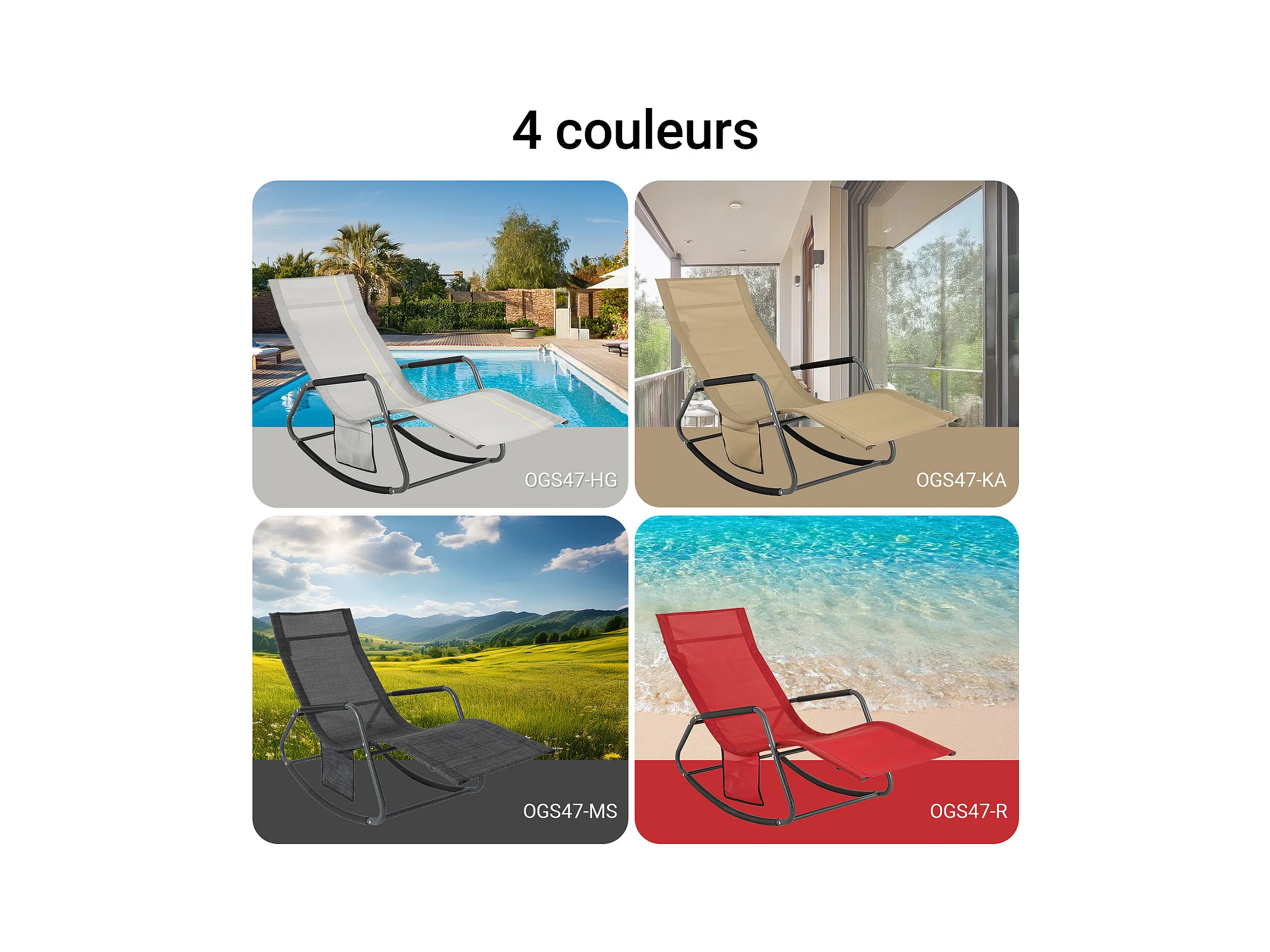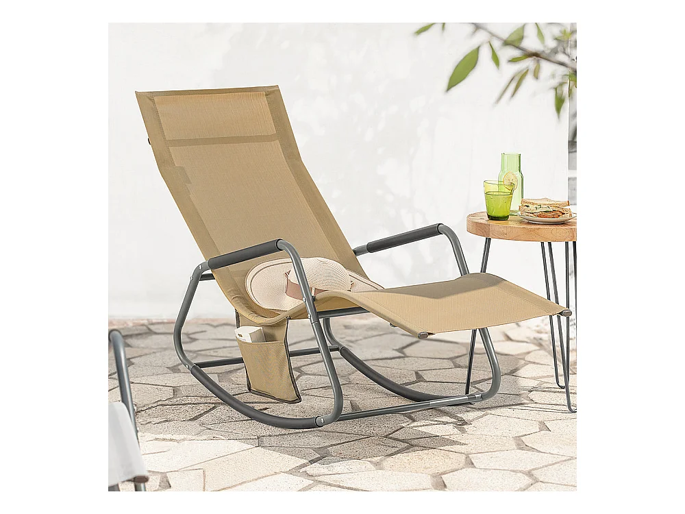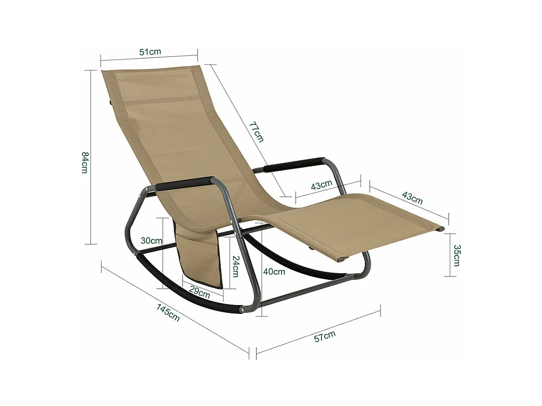 SoBuy OGS47-KA Schommelstoel Relaxstoel Ligstoel Lounge Chair Tuinstoel Zonnebaden - met Zijtas en Voetensteun - Draagvermogen 120 kg