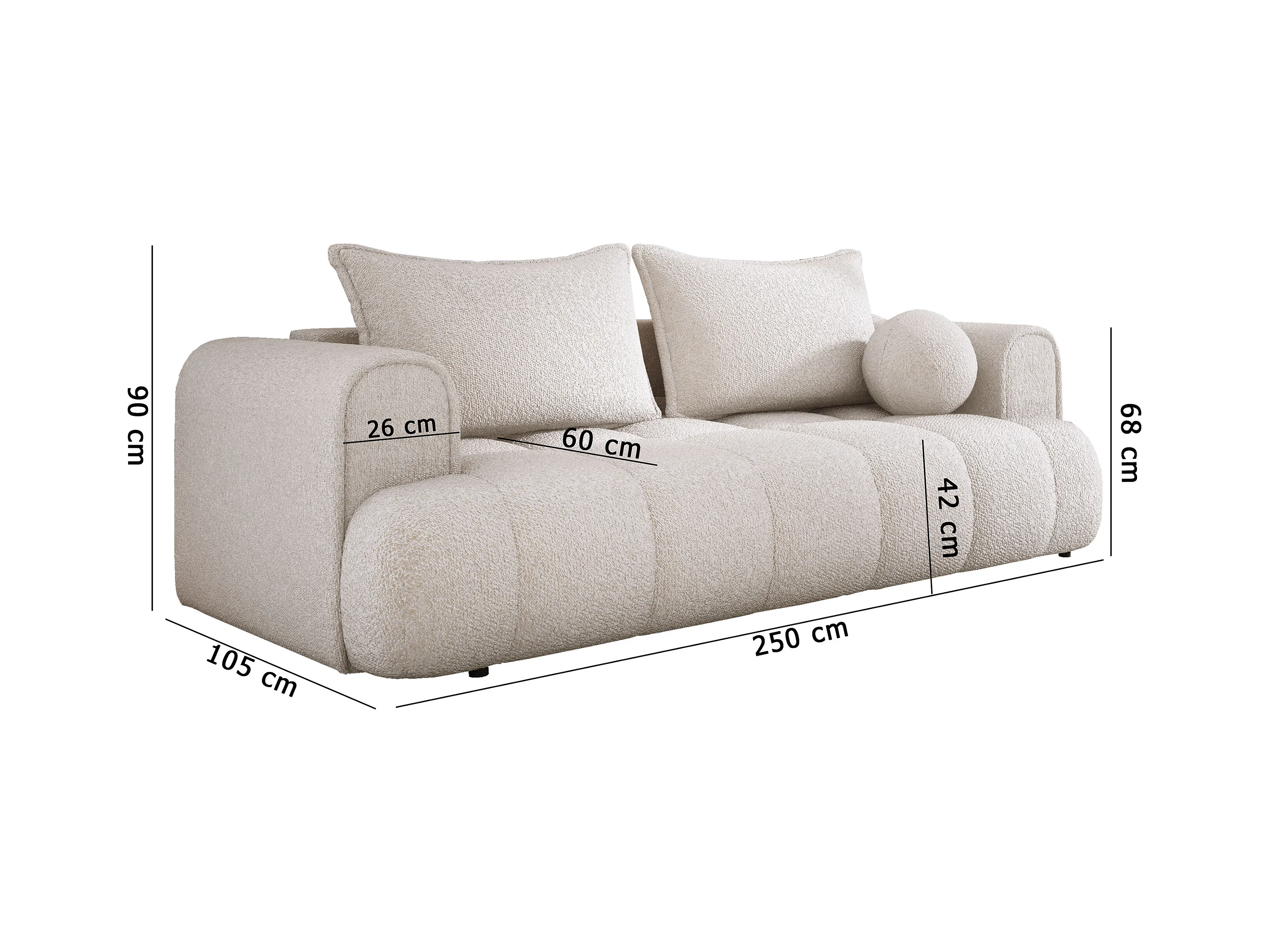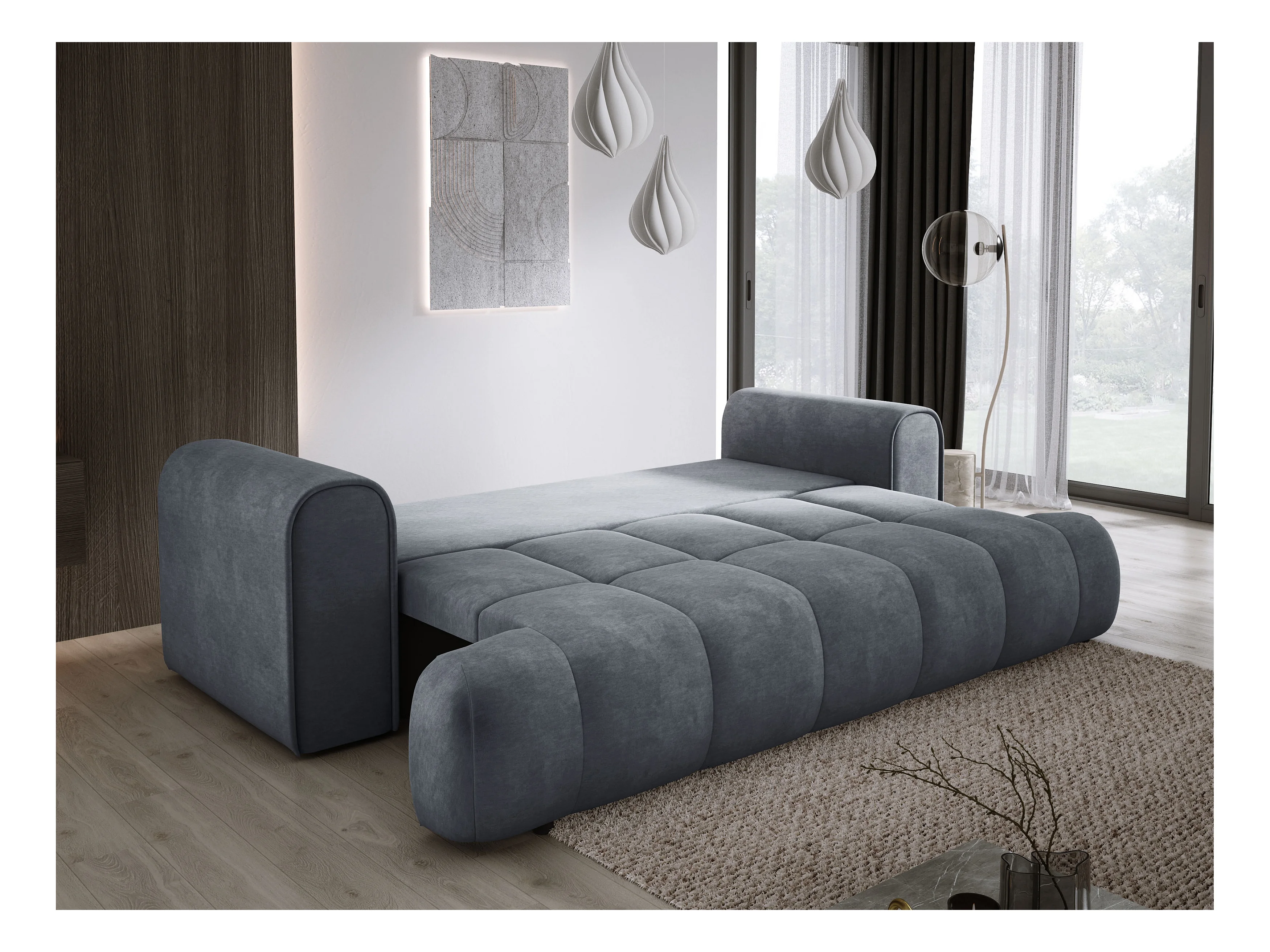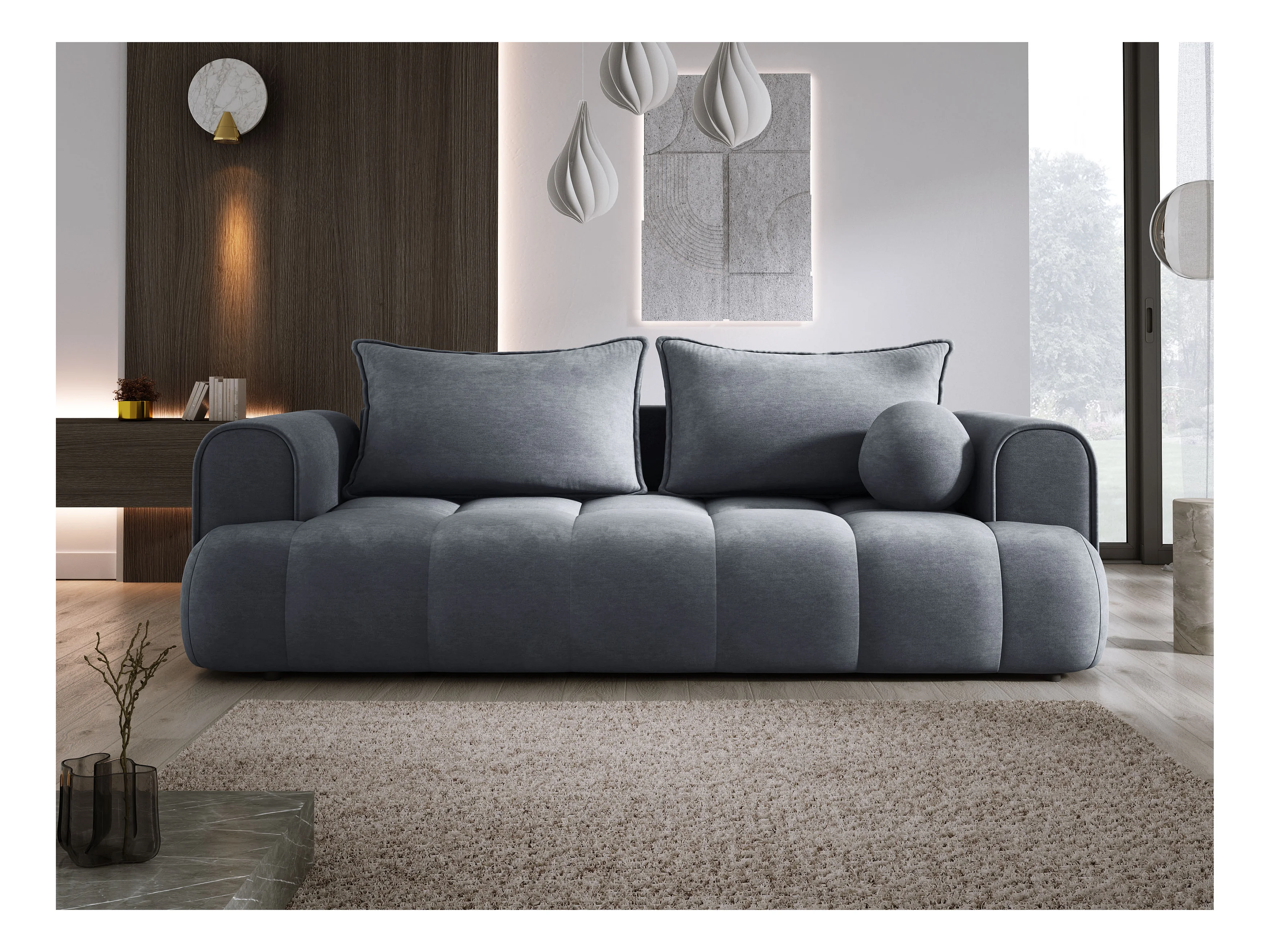 Sofa COCO Slaapbank met bedfunctie, CLOUD stof, 2-zits, vrijstaand, Afmeting: 250x105x90cm Kleur: Donkergrijs