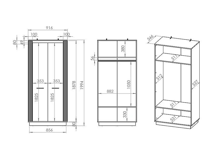Solal Hout en Zwart 2-deurs kledingkast