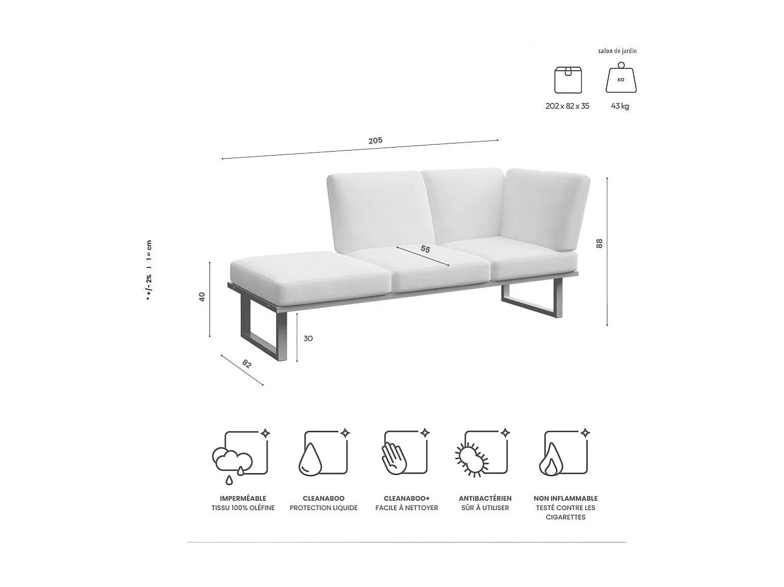 Soldeo ligstoel chaise longue lichtbeige - wit frame
