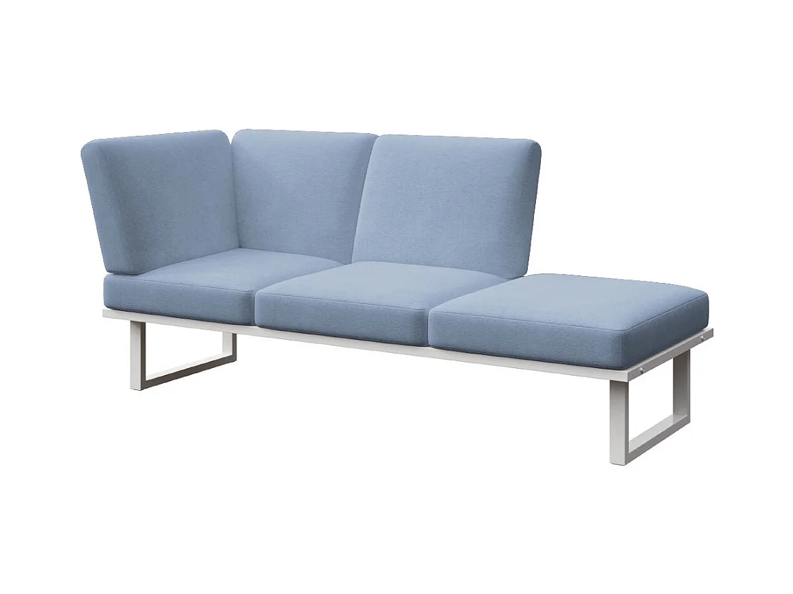 Soledo 4-zitsbank in lichtblauw - wit frame