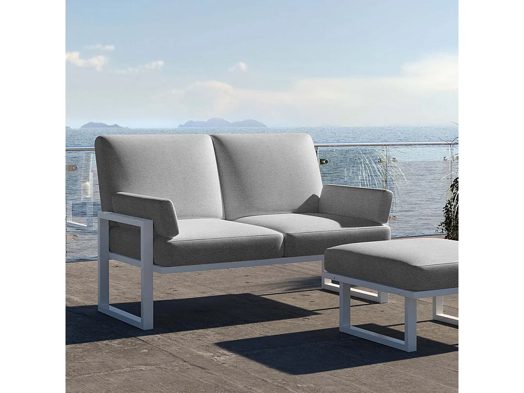 Soledo 2-zitsbank in lichtgrijs - wit frame