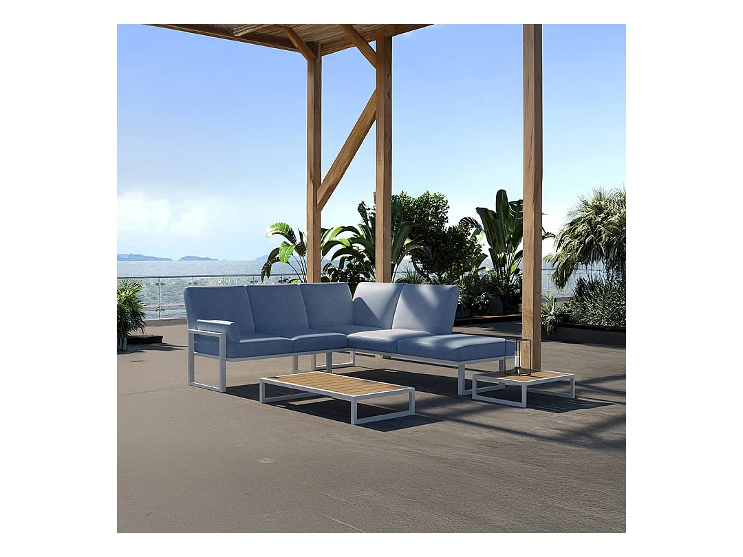 Soledo hoekbank lichtblauw - wit frame