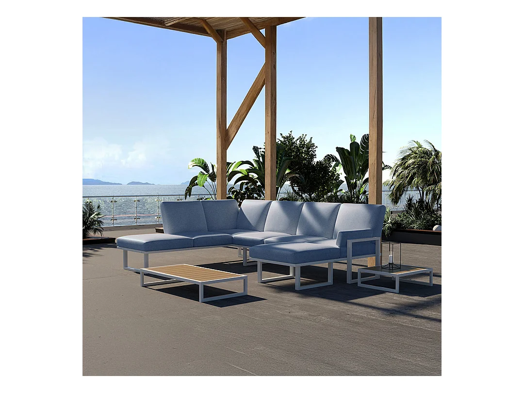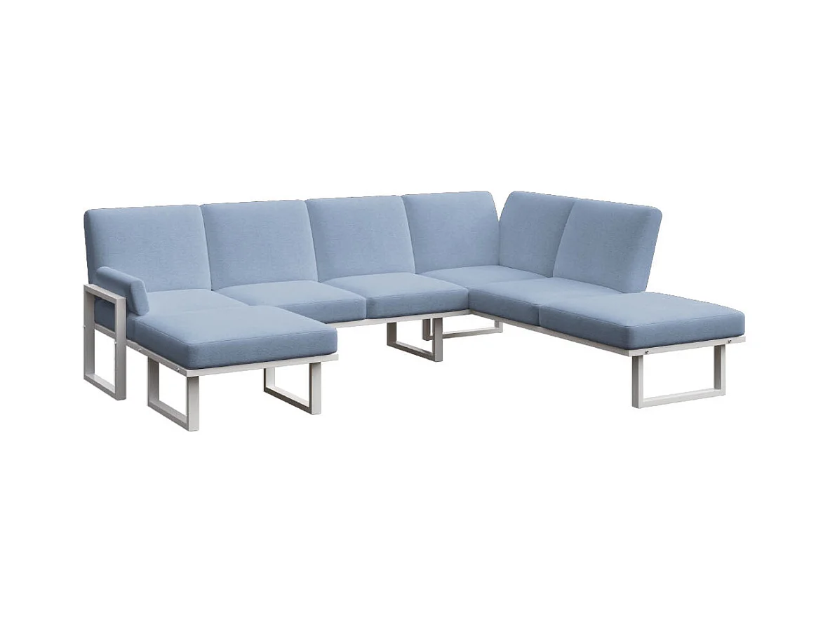 Soledo hoekbank lichtblauw - wit frame