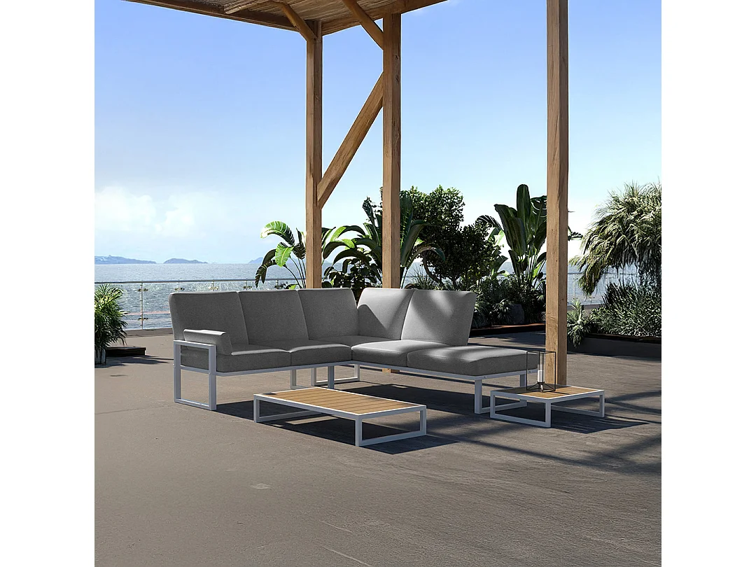 Soledo 4-zitsbank, lichtgrijs - wit frame