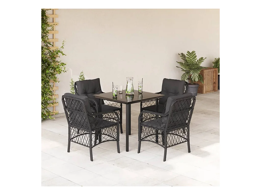 Yorba Linda 5-delige Tuinset met kussens poly rattan en glas zwart