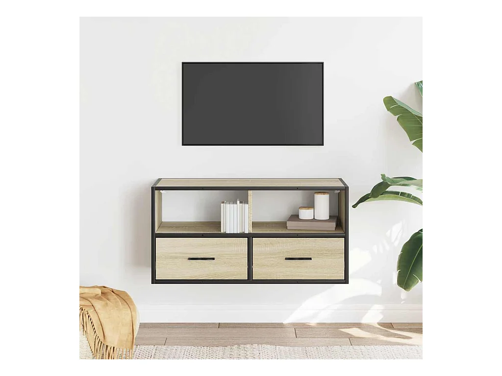 Sonoma eiken tv-kast 80x31x39,5 cm bewerkt hout en metaal