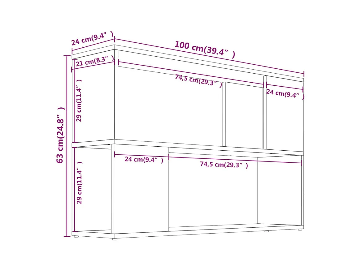 Sonoma Grey Boekenkast 100x24x63 cm Bewerkt Hout
