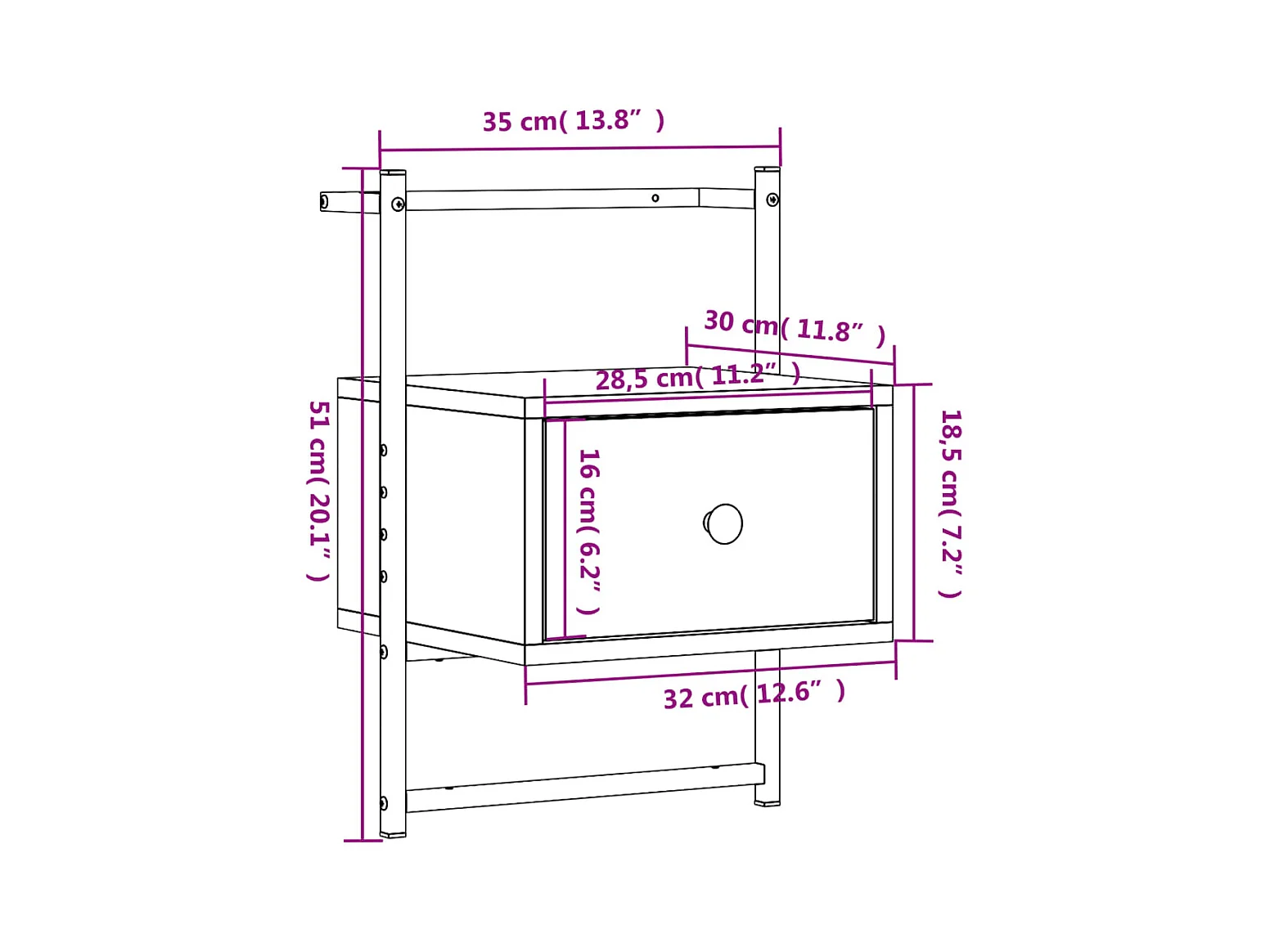 Sonoma Grey Wandgemonteerd Nachtkastje 35x30x51cm Gemaakt van Bewerkt Hout