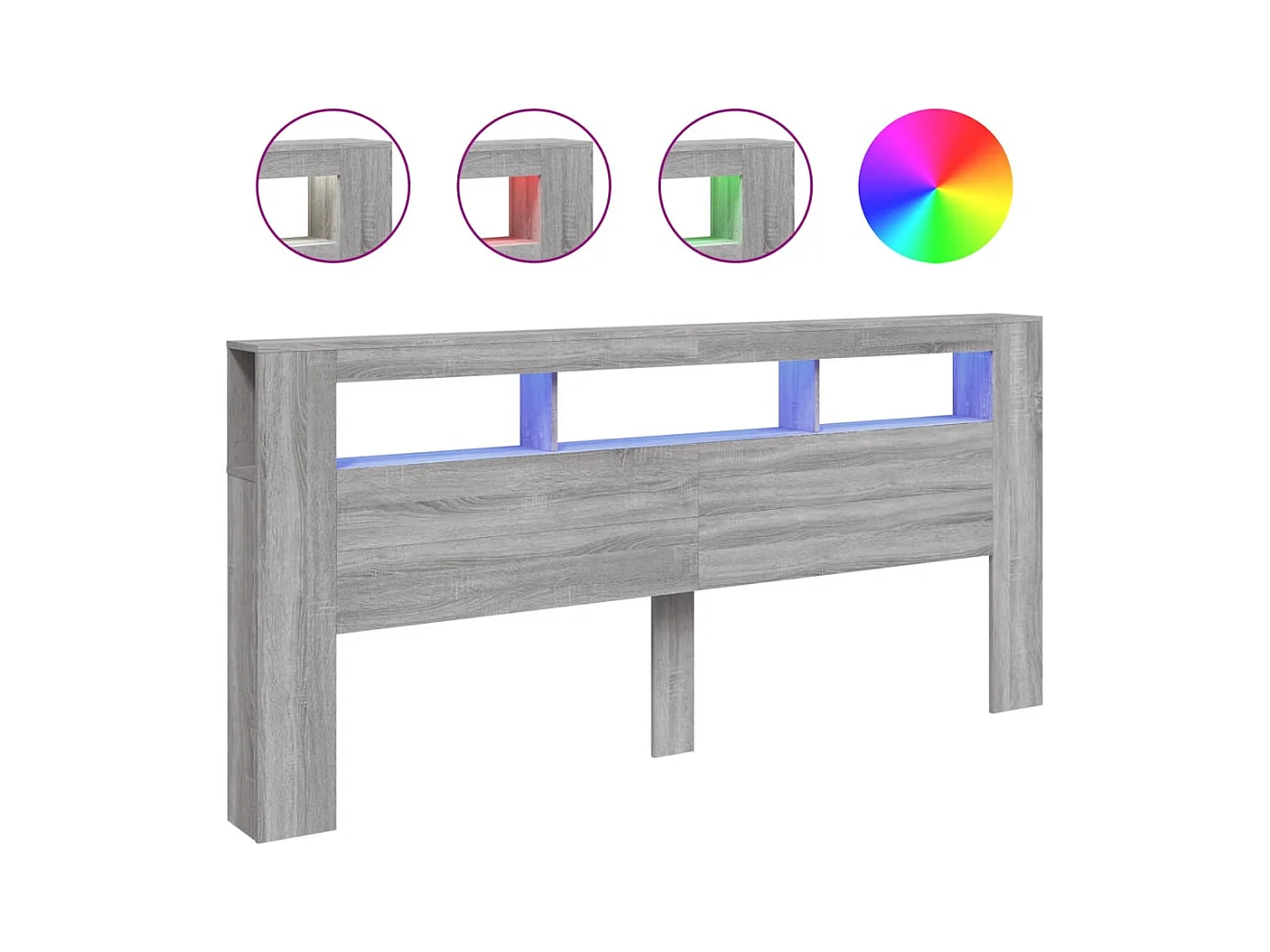 Sonoma grijs LED hoofdbord 180x18,5x103,5 cm bewerkt hout