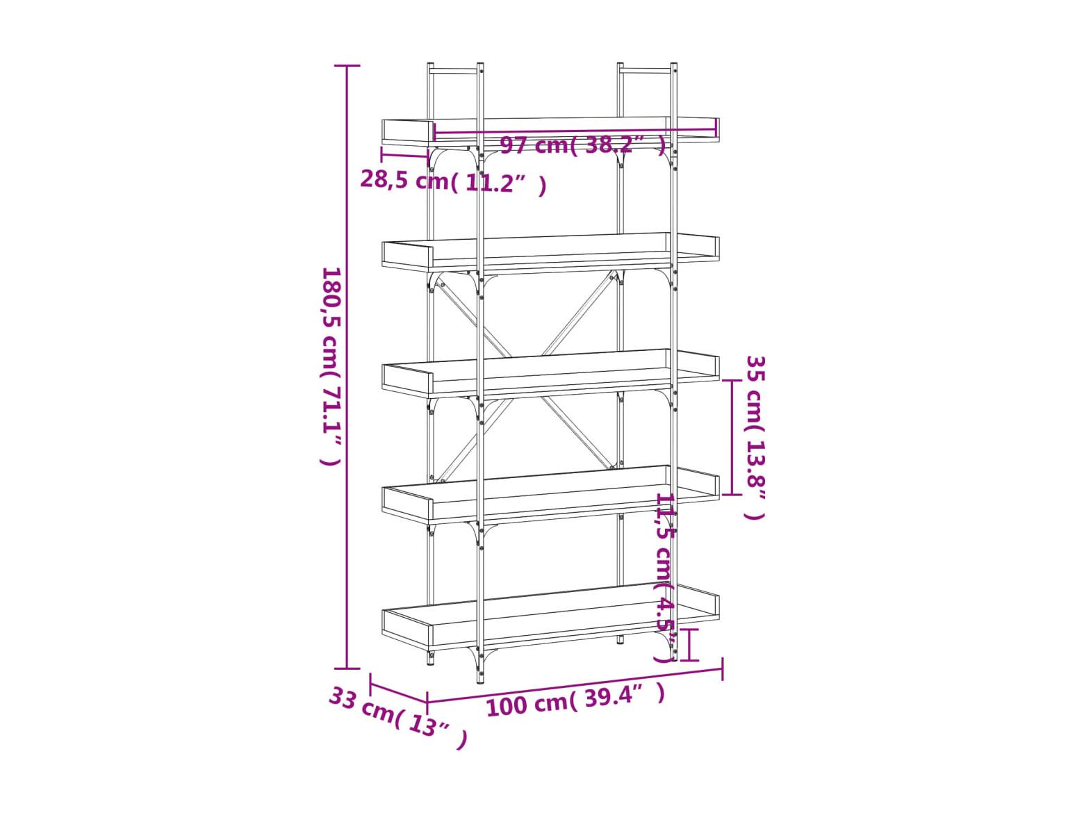 Sonoma boekenkast grijs 100x33x70,5 cm Technisch hout staal