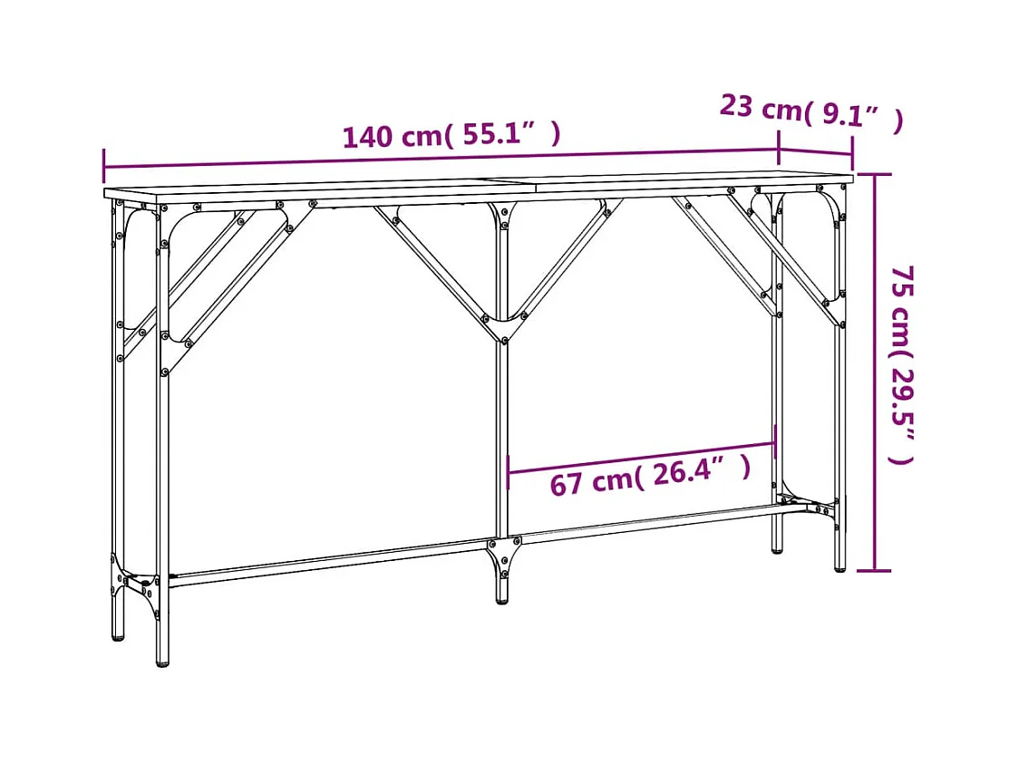 Sonoma grijze consoletafel 140x23x75 cm bewerkt hout