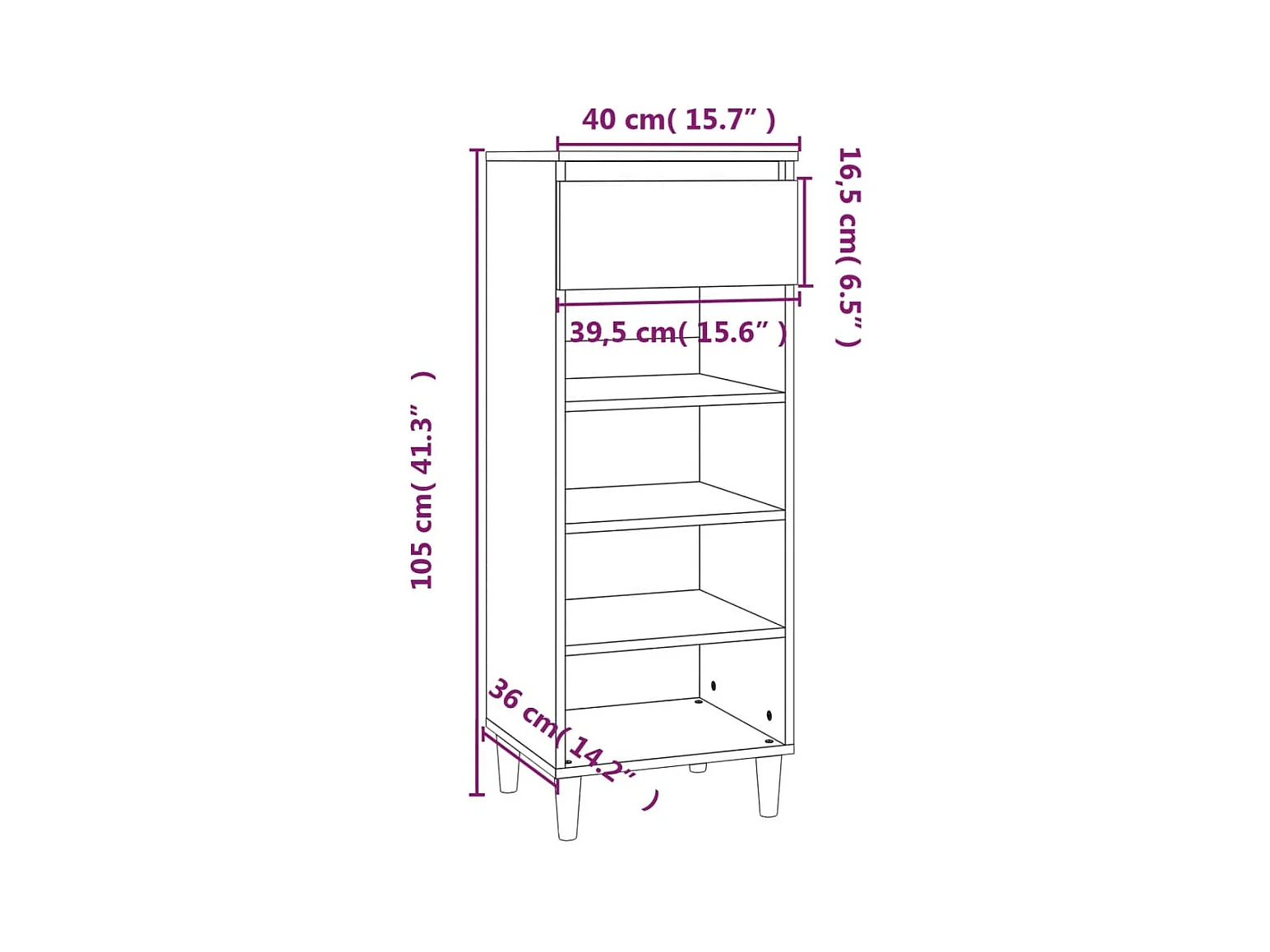 Sonoma grijze schoenenkast 40x36x105 cm Technisch hout