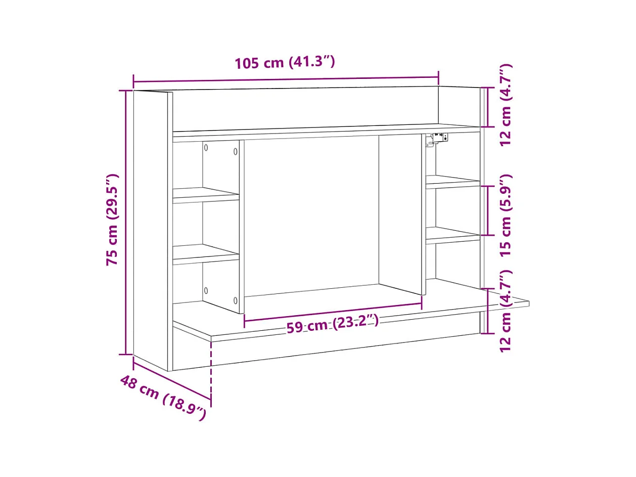 Sonoma wandbureau grijs 105x48x75 cm bewerkt hout