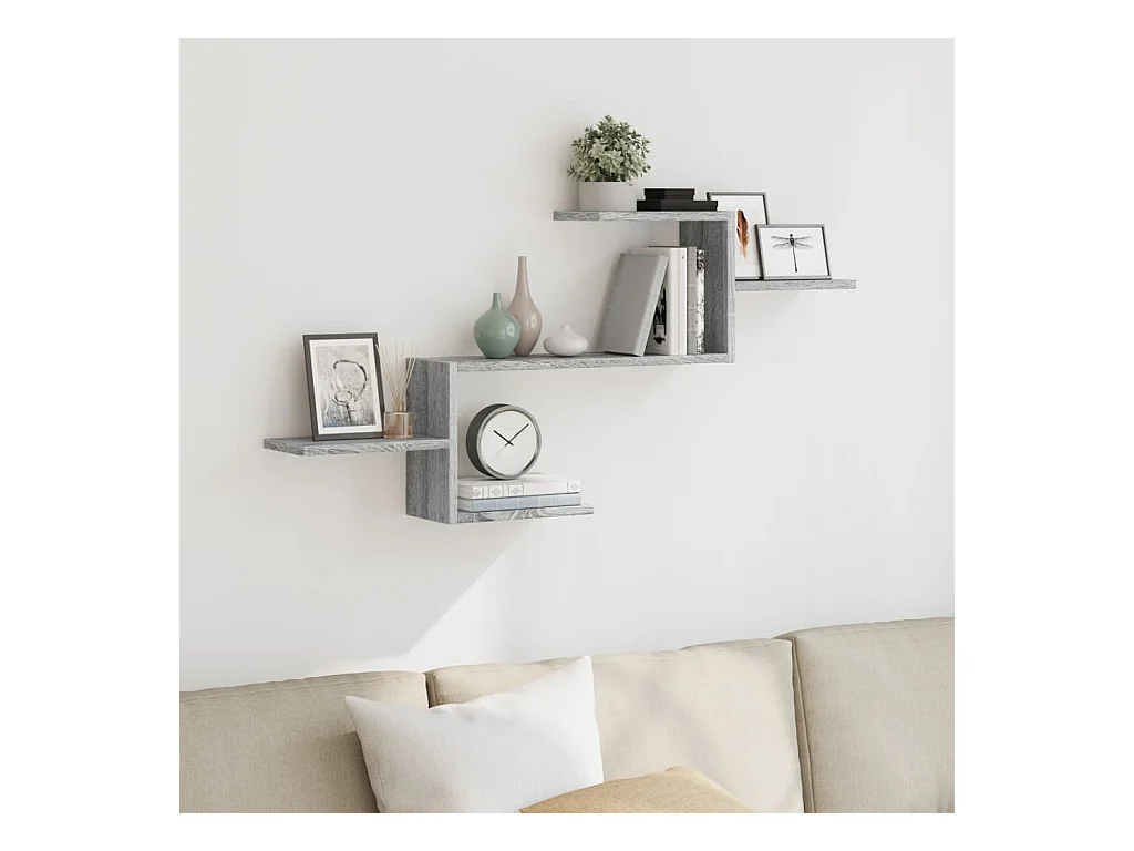 Kubus wandplanken 2 stuks Sonoma grijs 60x15x23 cm Hout