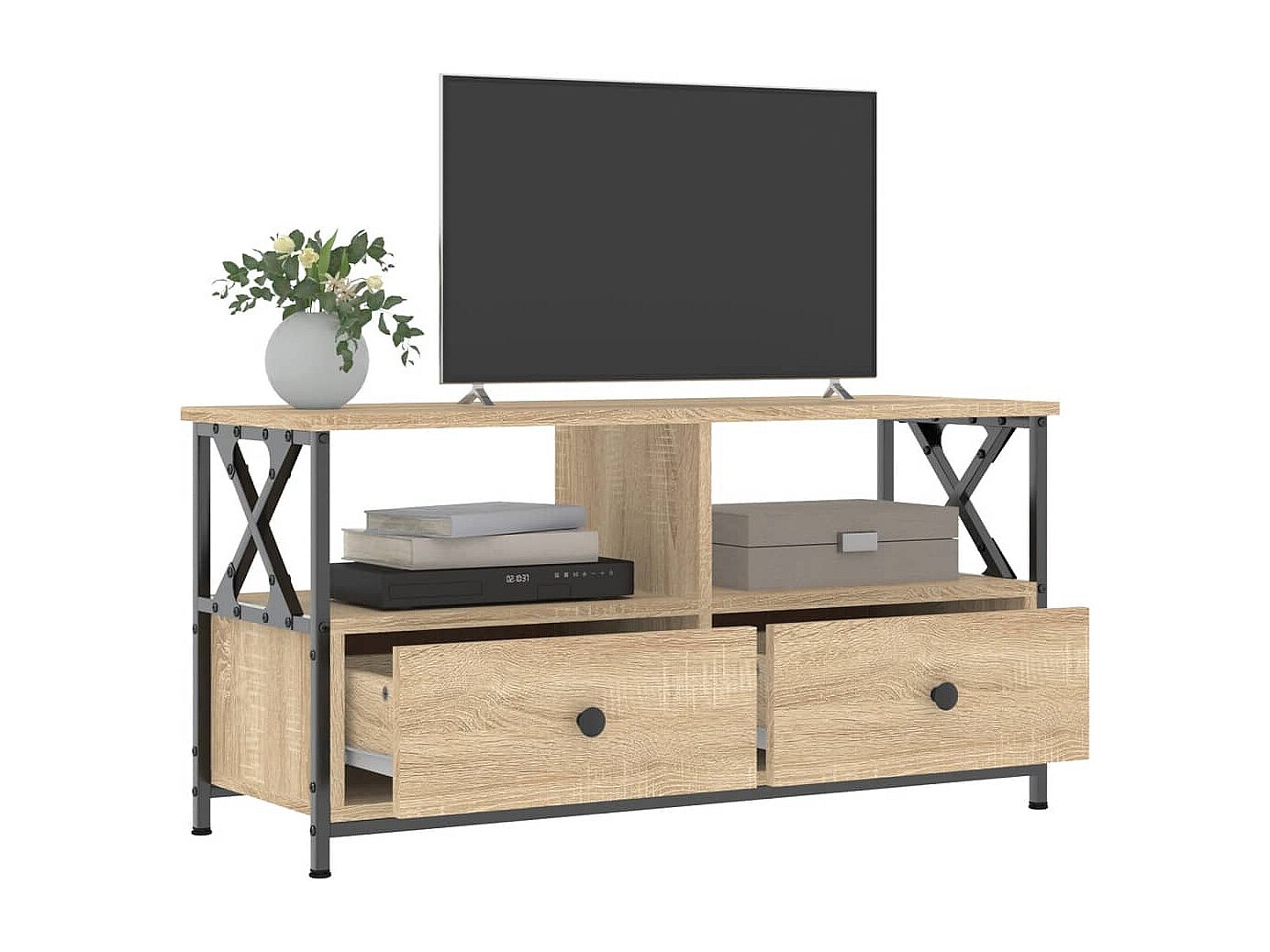 Sophie-Bernadette-Marie Tv-meubel 90x33x45 cm bewerkt hout en ijzer sonoma eikenkleur