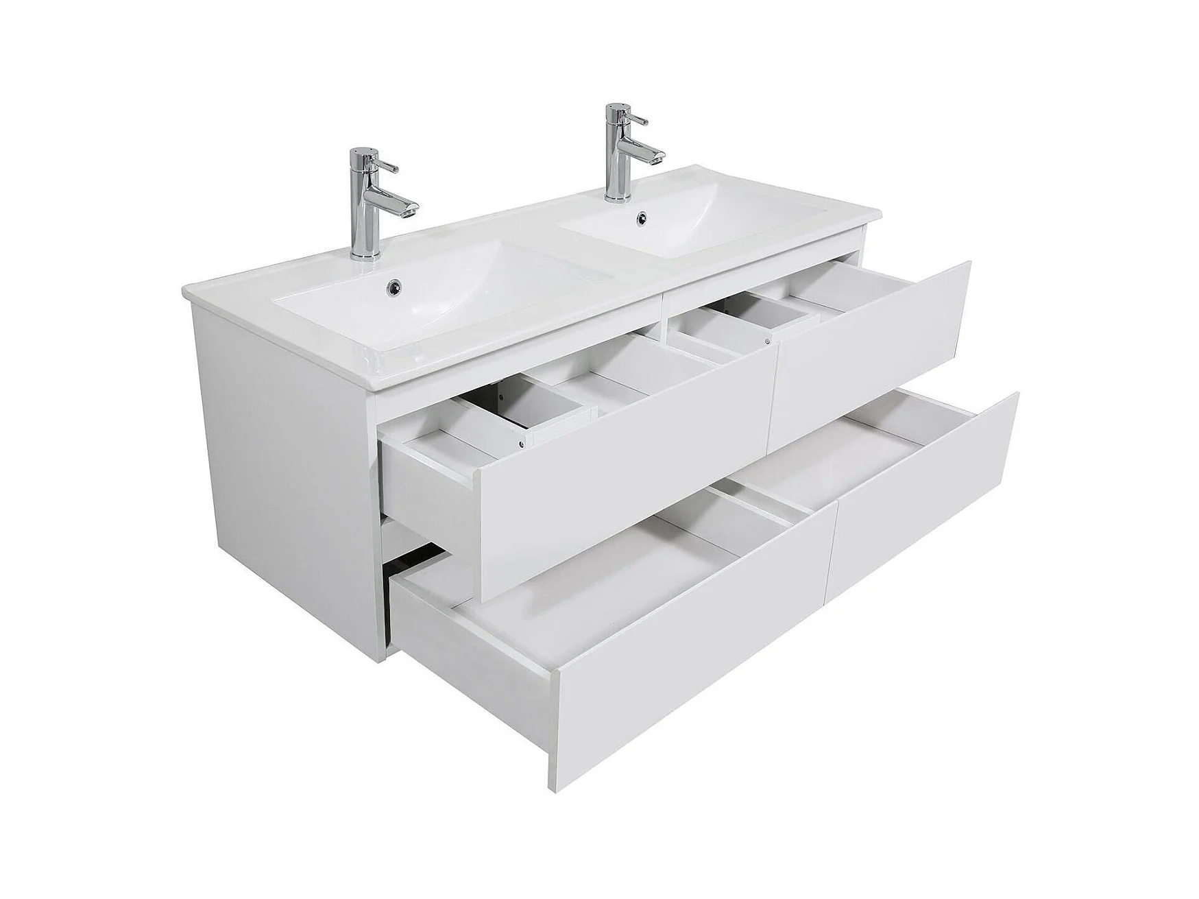 SORRENTO 120cm wandgemonteerde dubbele spoelbak met keramisch wastafelblad