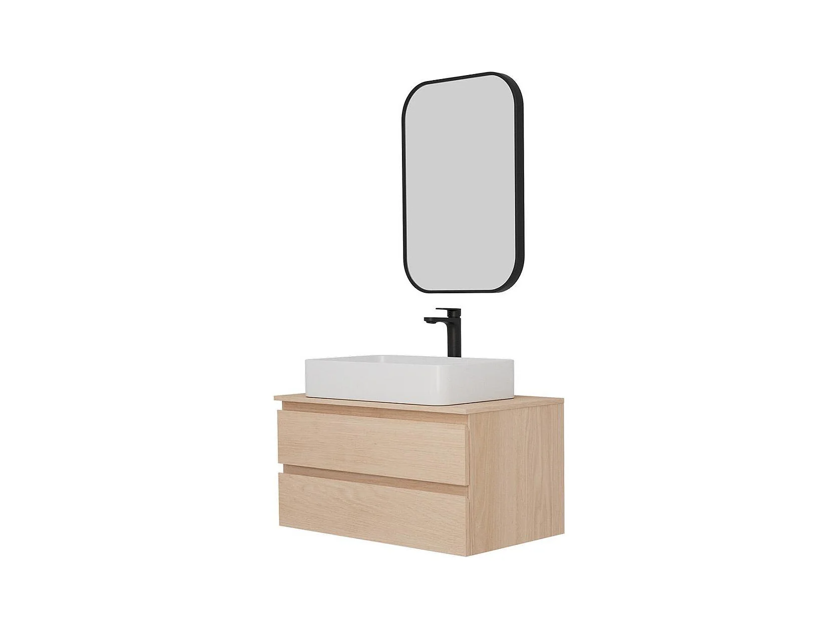 SORRENTO wastafelmeubelset met enkele wasbak 80 cm + wastafel + kraan + spiegel