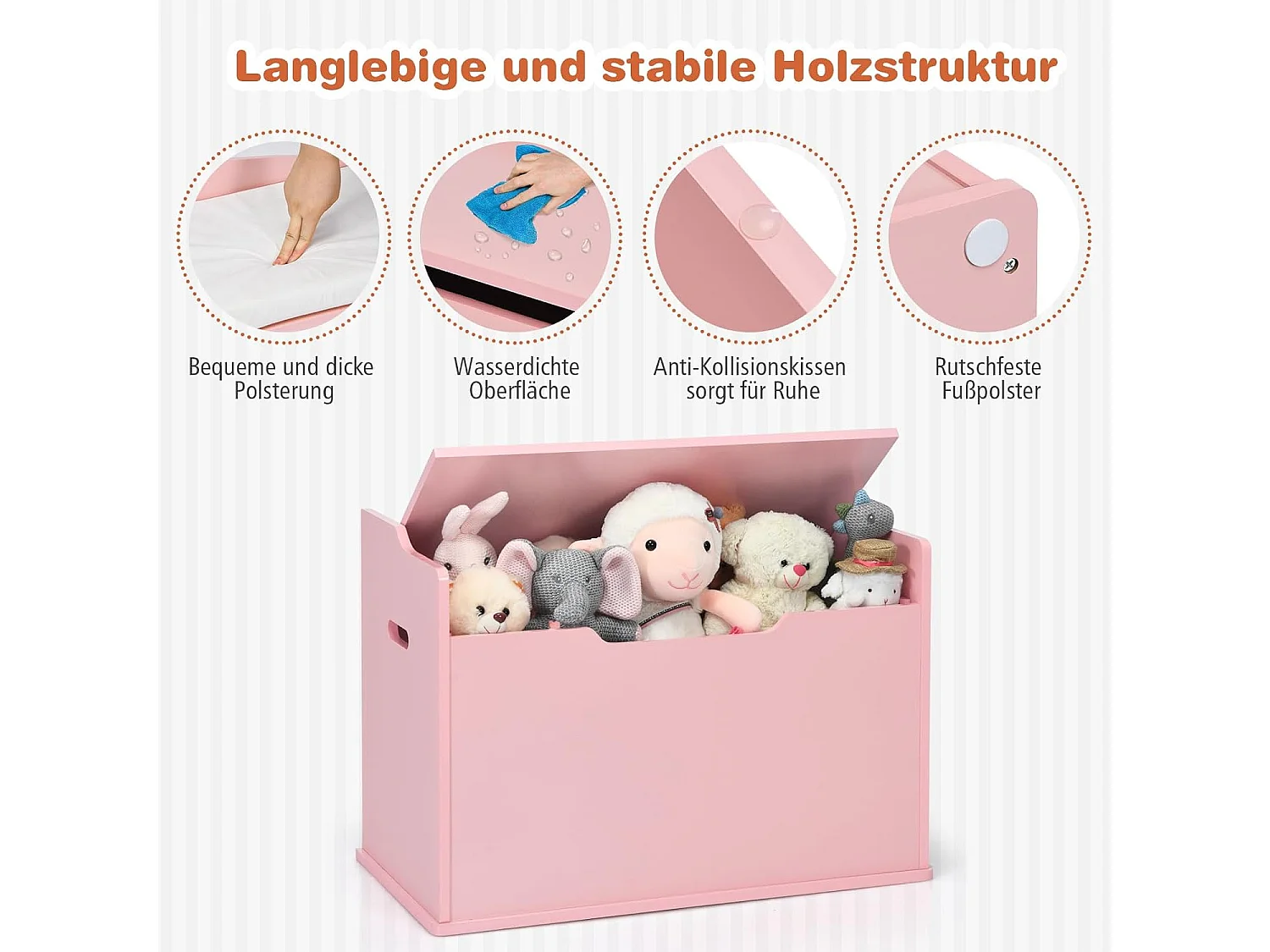 Speelgoedkist met deksel, 2-in-1 speelgoedkist met kussen, houten speelgoedkast met handgrepen, speelgoedopslag voor kinderkamer 74 x 39 x 52 cm (roze)TI88811