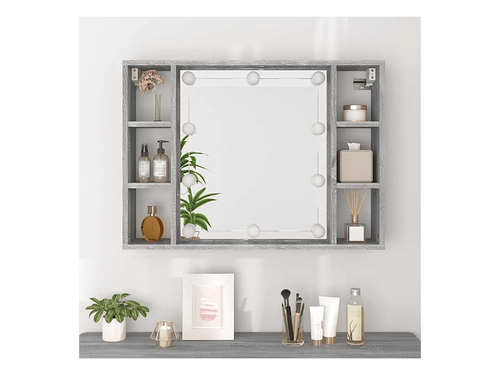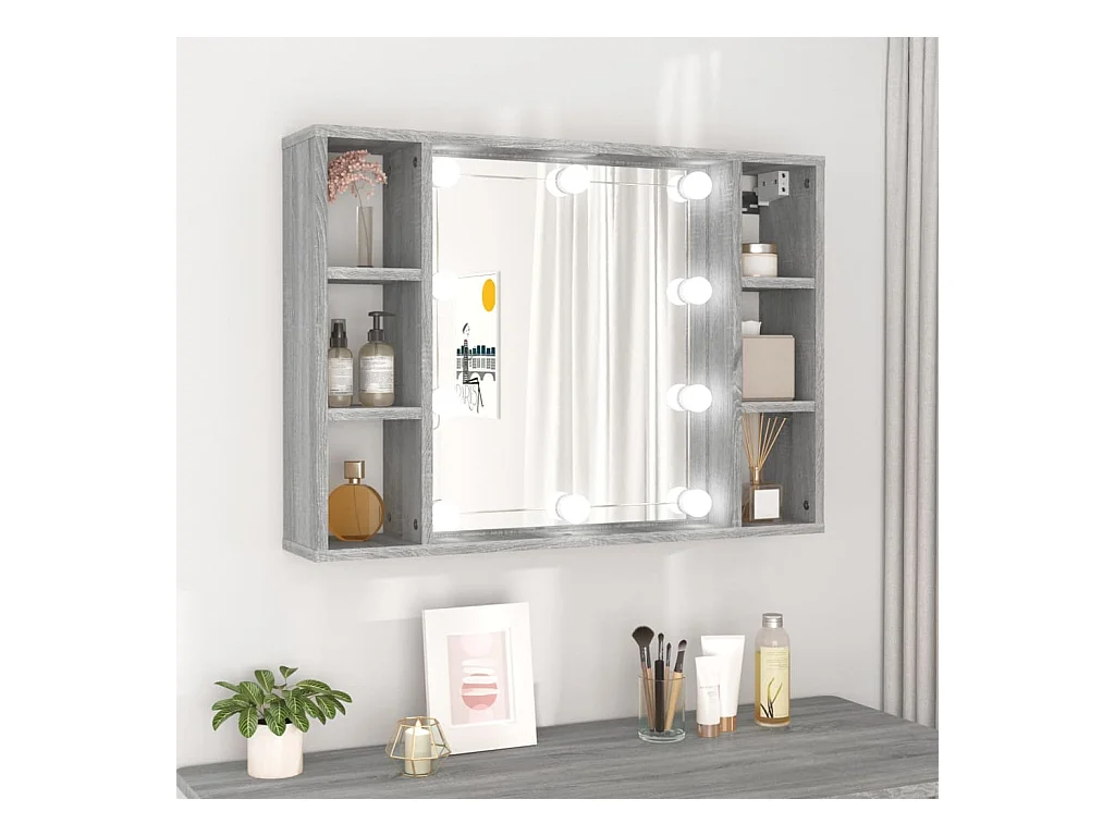 Spiegelkast met LED-verlichting 76x15x55 cm grijs sonoma eiken