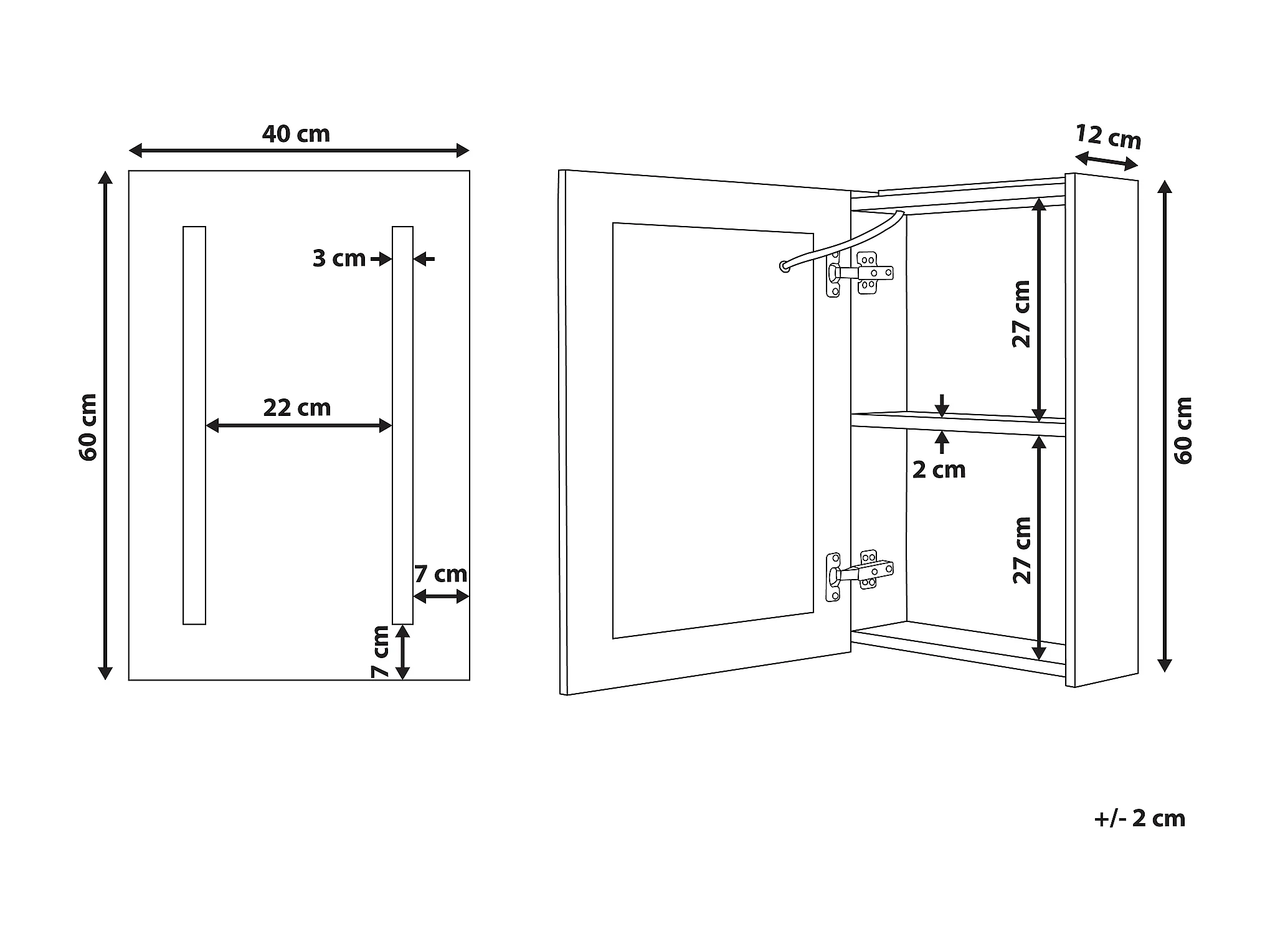 Badkamer wandkast met spiegel LED CAMERON 40 cm 60 cm Wit