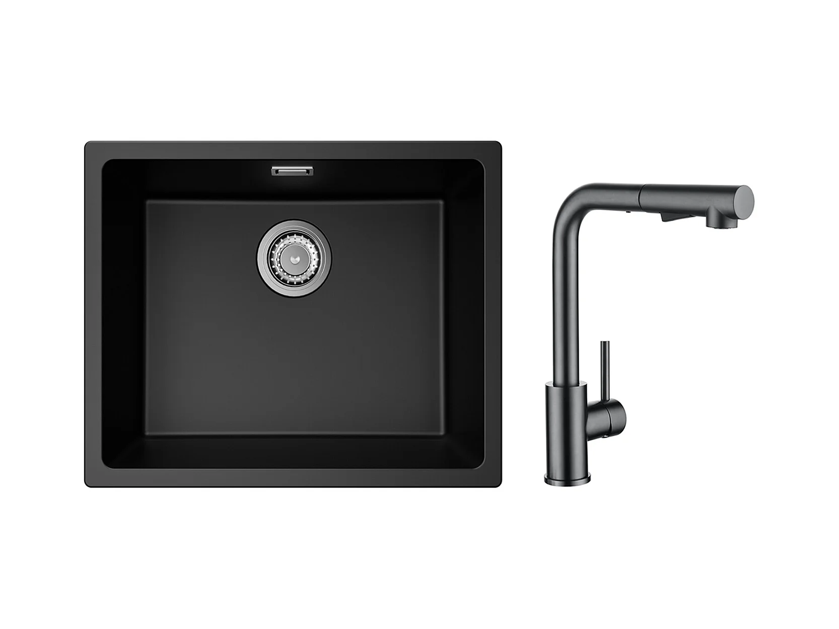 Spoelbak Orteon 45x40 cm + Zwarte Nymex Keukenkraan