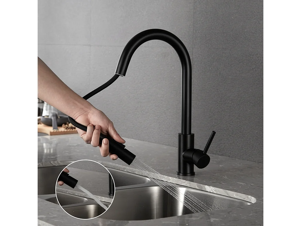 CROOM SANITAIR keukenkraan Nymex Zwart met uittrekbare uitloop