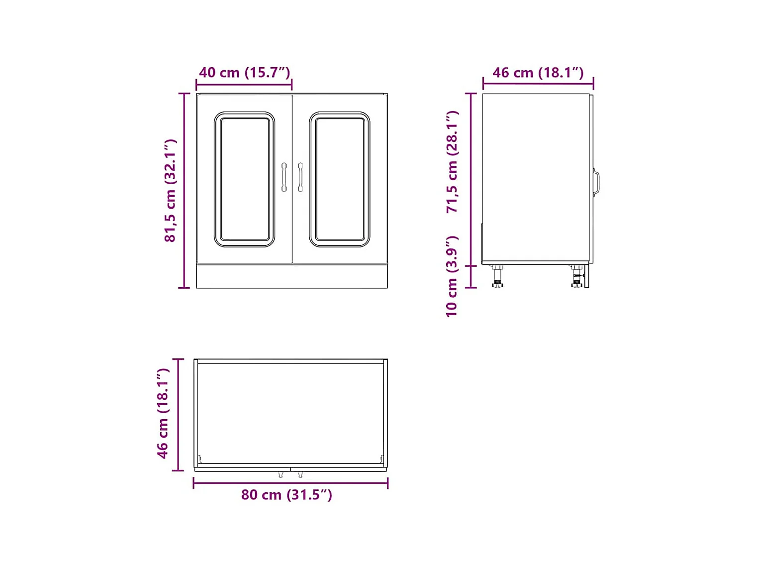 Spoelbakonderkast Kalmar 80x46x81,5 cm bewerkt hout wit