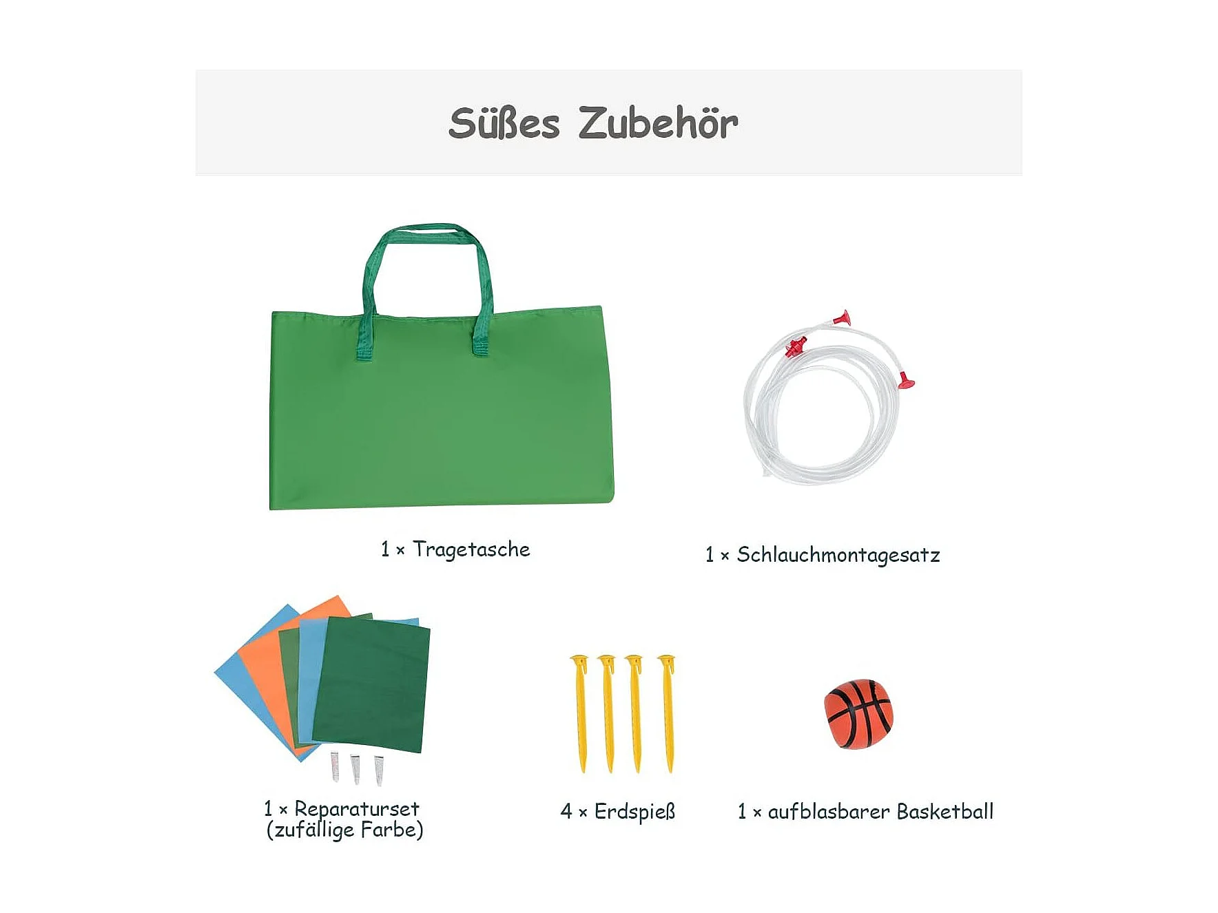 Springkasteel met glijbaan, klimwand, kinderbadje, waterkanon en basketbalring, waterpark voor nat en droog gebruik, inclusief reparatieset, draagtas groen