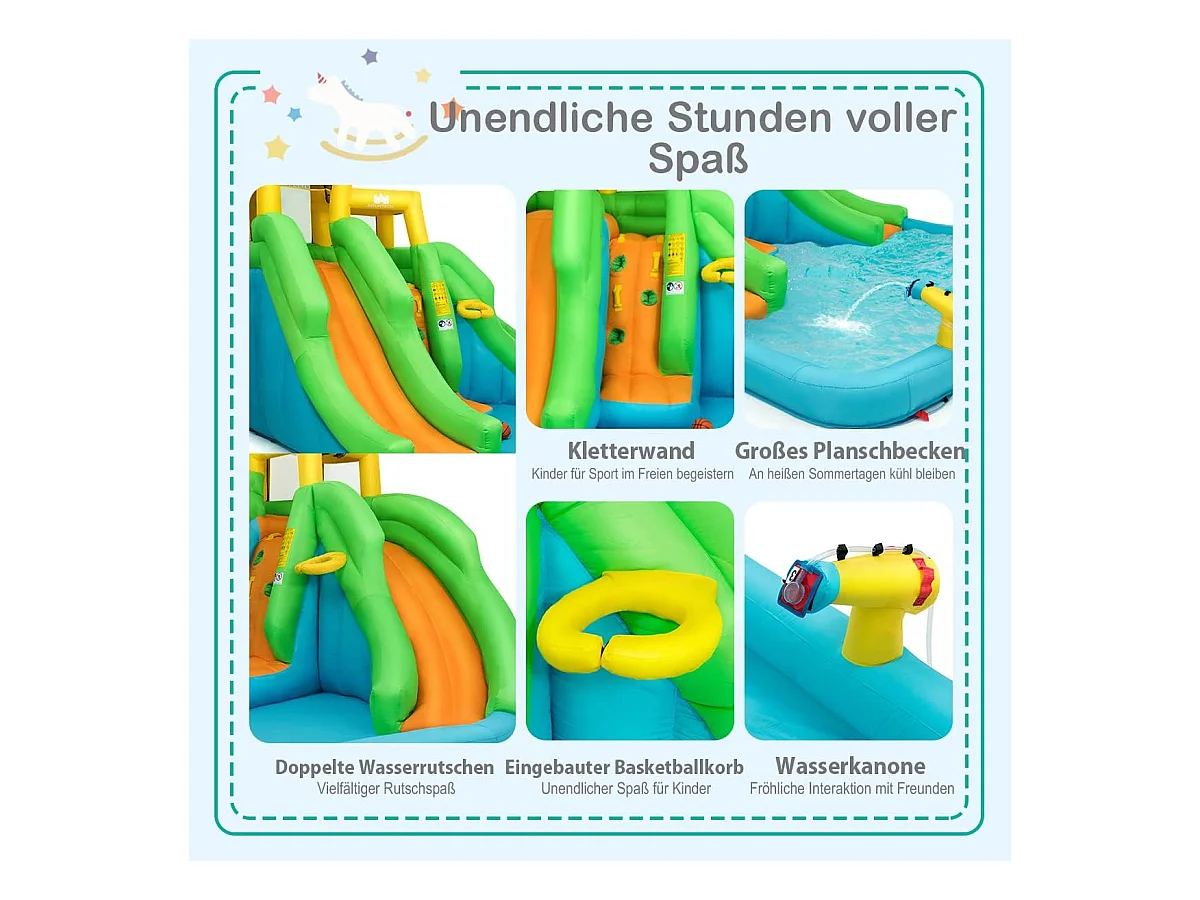 Springkasteel met blazer, waterpark met twee glijbanen, klimwand, basketbalmand, kinderbadje en waterkanon, incl.400 x 361 x 255 cmAB92368