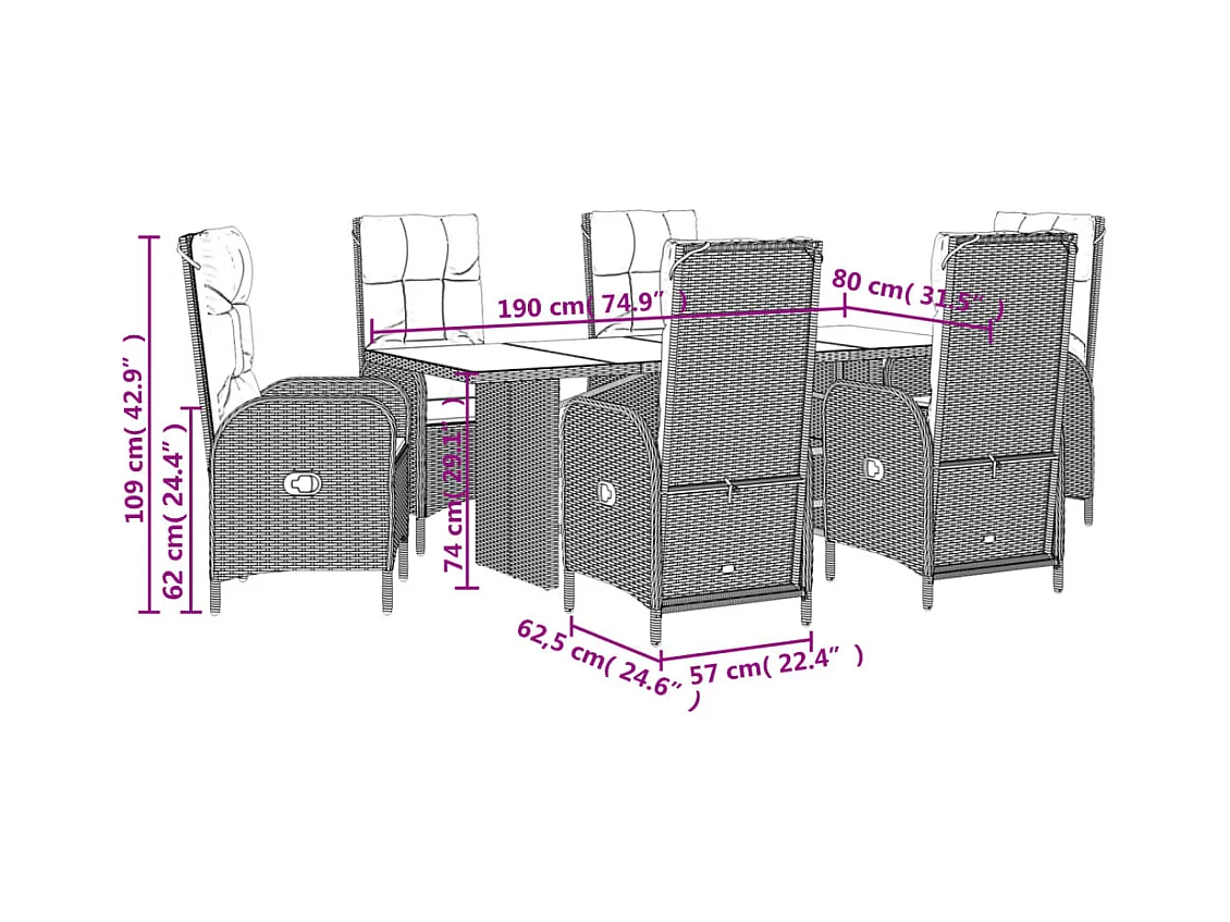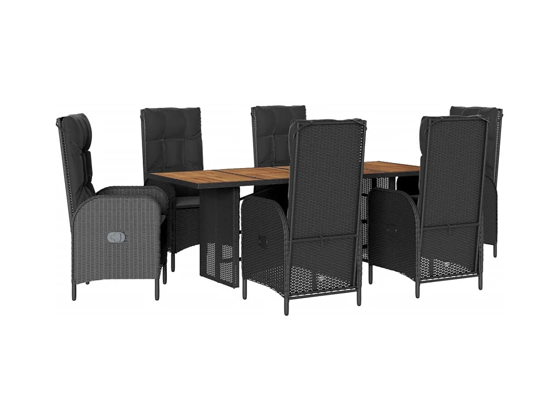 Anselm 7-delige Tuinset met kussens poly rattan zwart