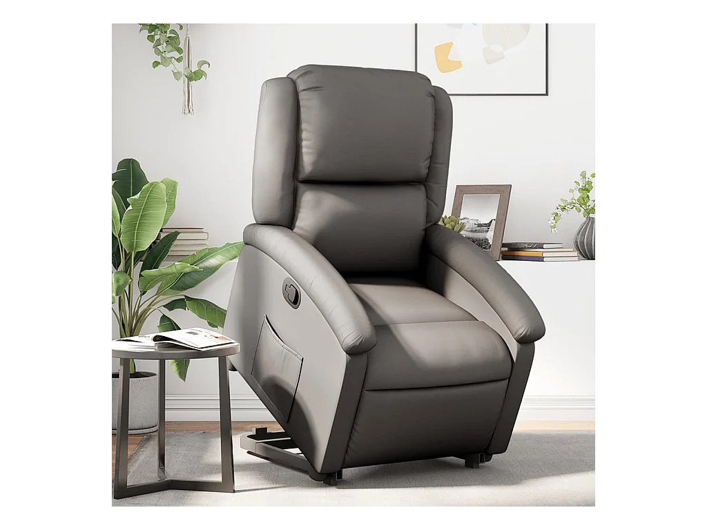 Draaibare relaxfauteuil met voetenbank, kunstleer, grijs (85x82x106 cm)