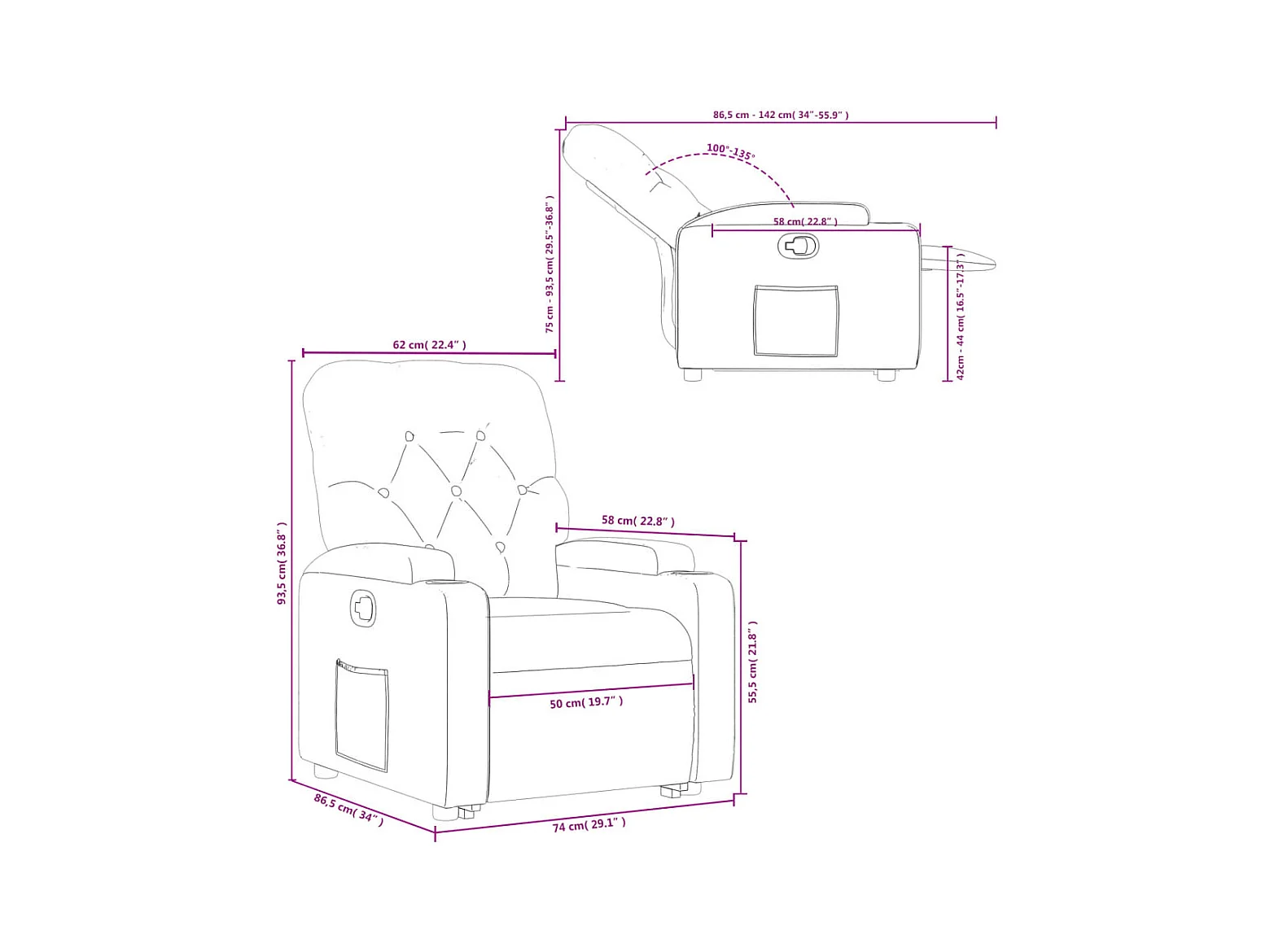 Fauteuil verstelbaar met voetensteun kunstleer zwart