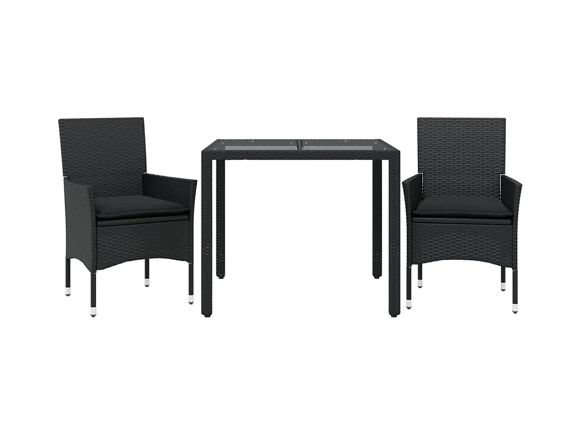 Bakersfield 3-delige Tuinset met kussens poly rattan en glas zwart