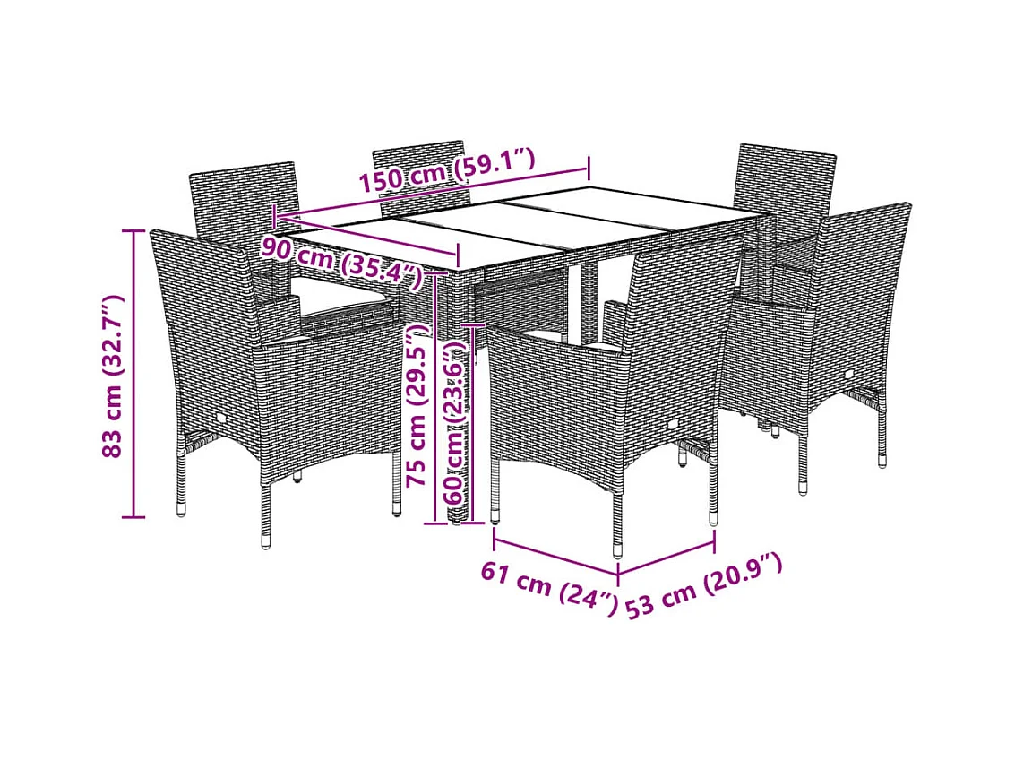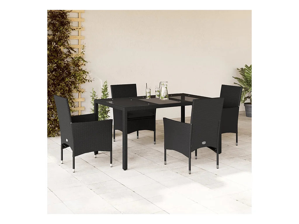 Bakersfield 5-delige Tuinset met kussens poly rattan en glas zwart