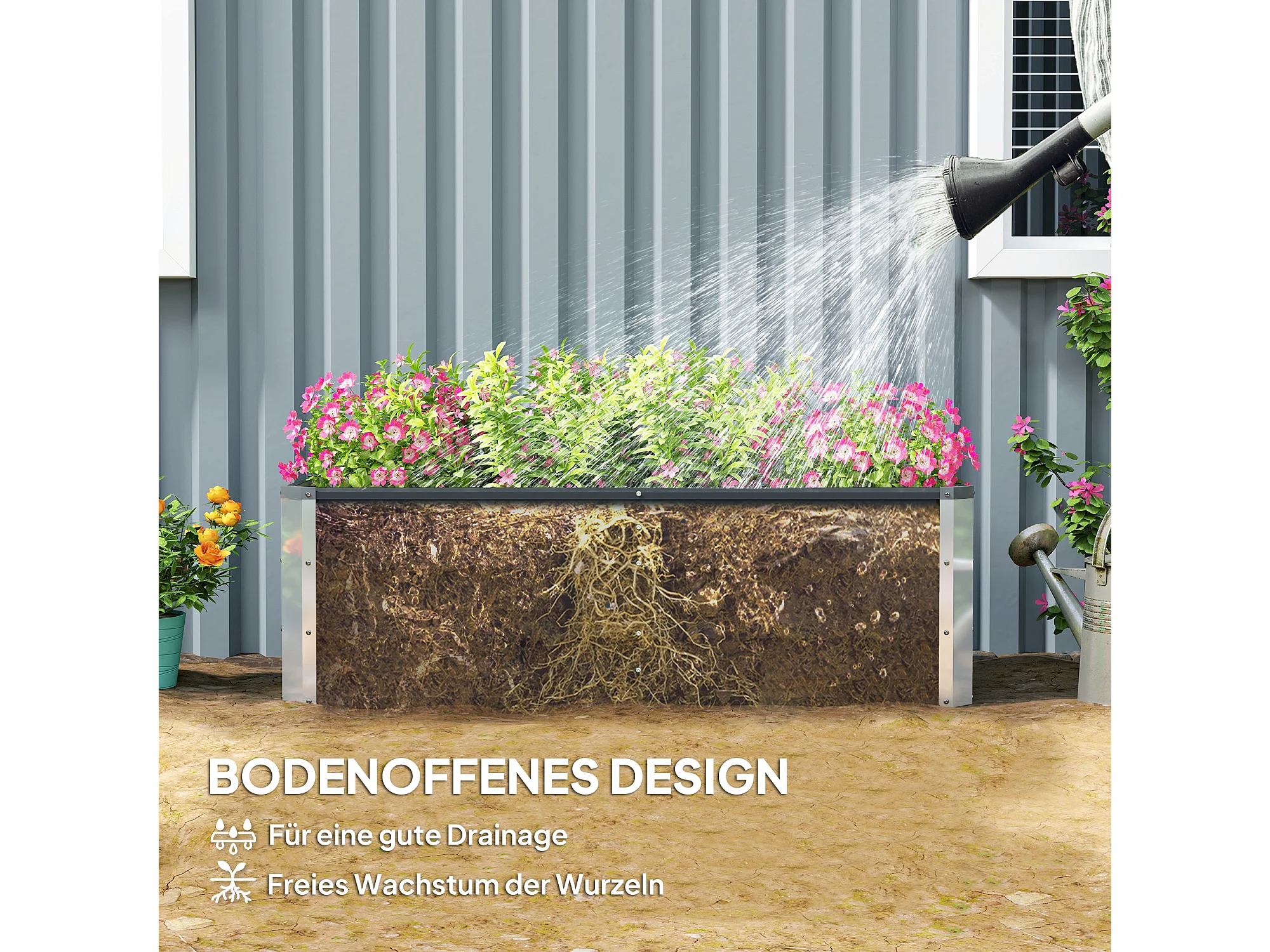 Plantenbak met open voet, van staal, weerbestendig, voor tuin en balkon, lichtgrijs (120x120x30 cm)