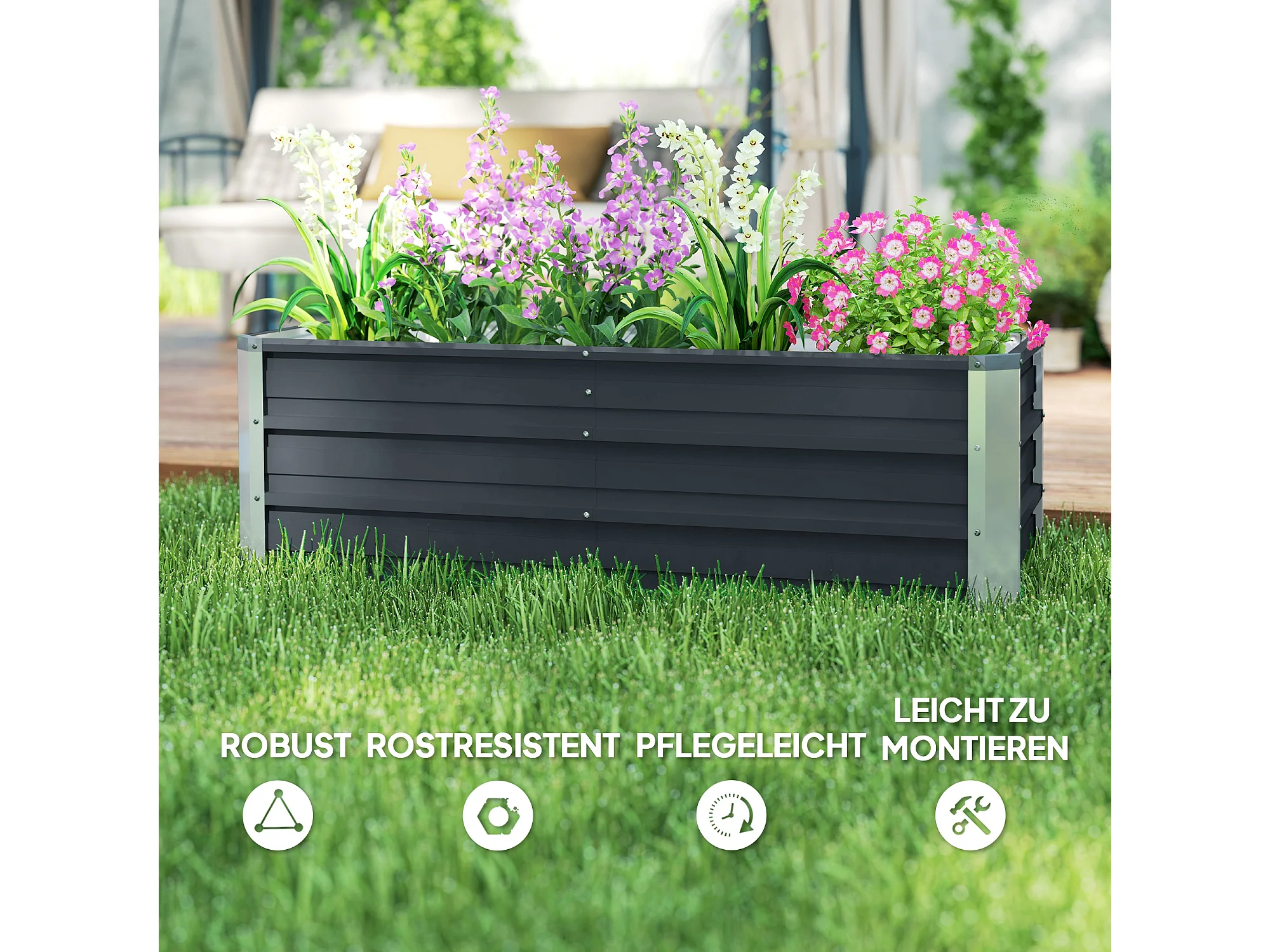 Verhoogde moestuin met poten, drainage, metaal, donkergrijs (100x30x80cm)