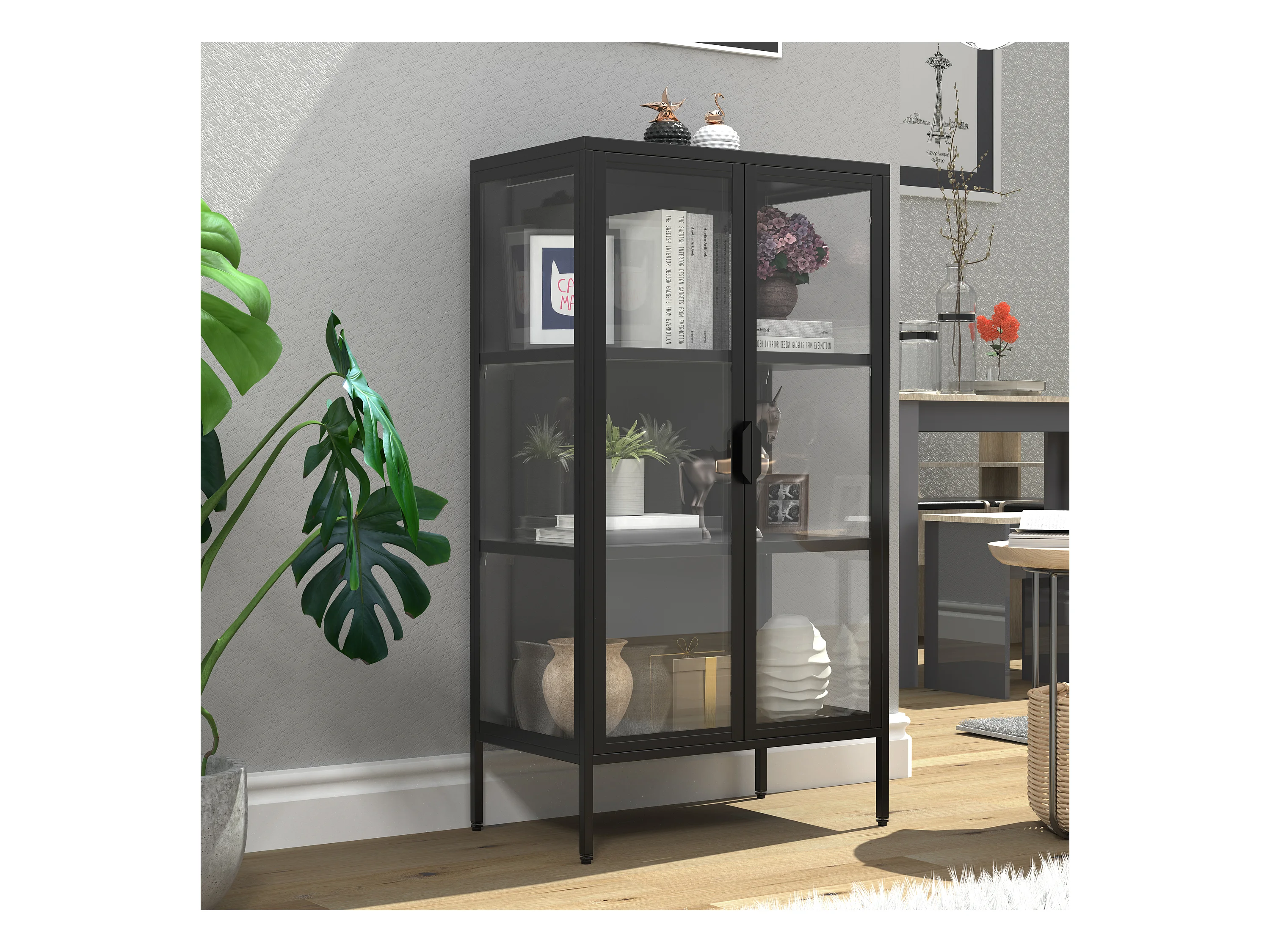 De vitrine van het staalglas Floka M